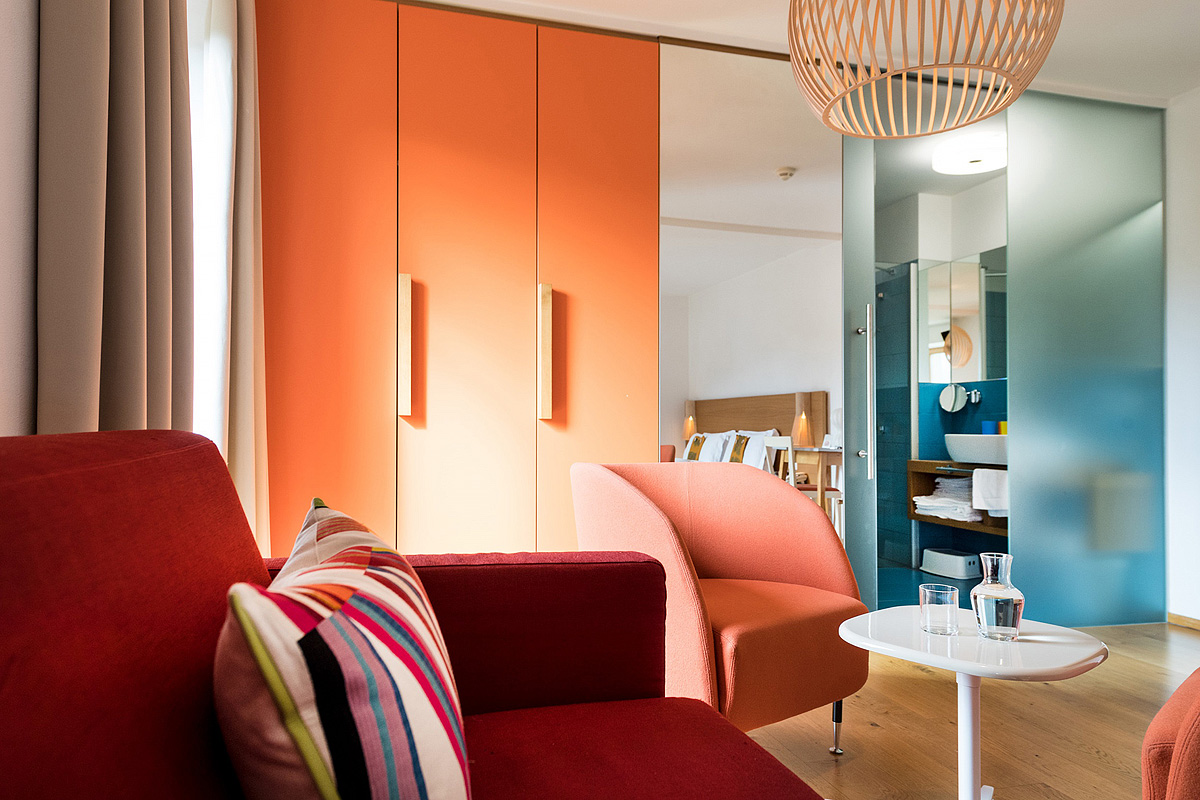 Junior Suite Azalea 2/3 - 25 m² - pokoj s manželskou postelí a případně rozkládacím gaučem na lůžko pro 1 osobu (o šířce 140 cm), sociální zařízení se sprchou, balkon