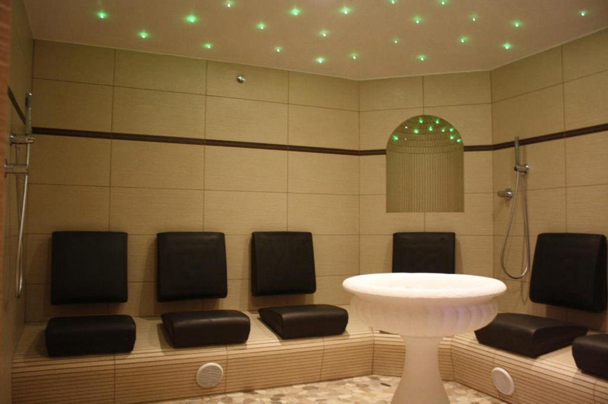 vyhřívaný bazén 10x5m s vířivkou, sauna*, bio sauna*, pára*, multifunkční sprcha*, relaxační koutek s 2 vodními lehátky* ; v rámci relaxačního centra jsou zdarma nabízeny též bylinkové čaje