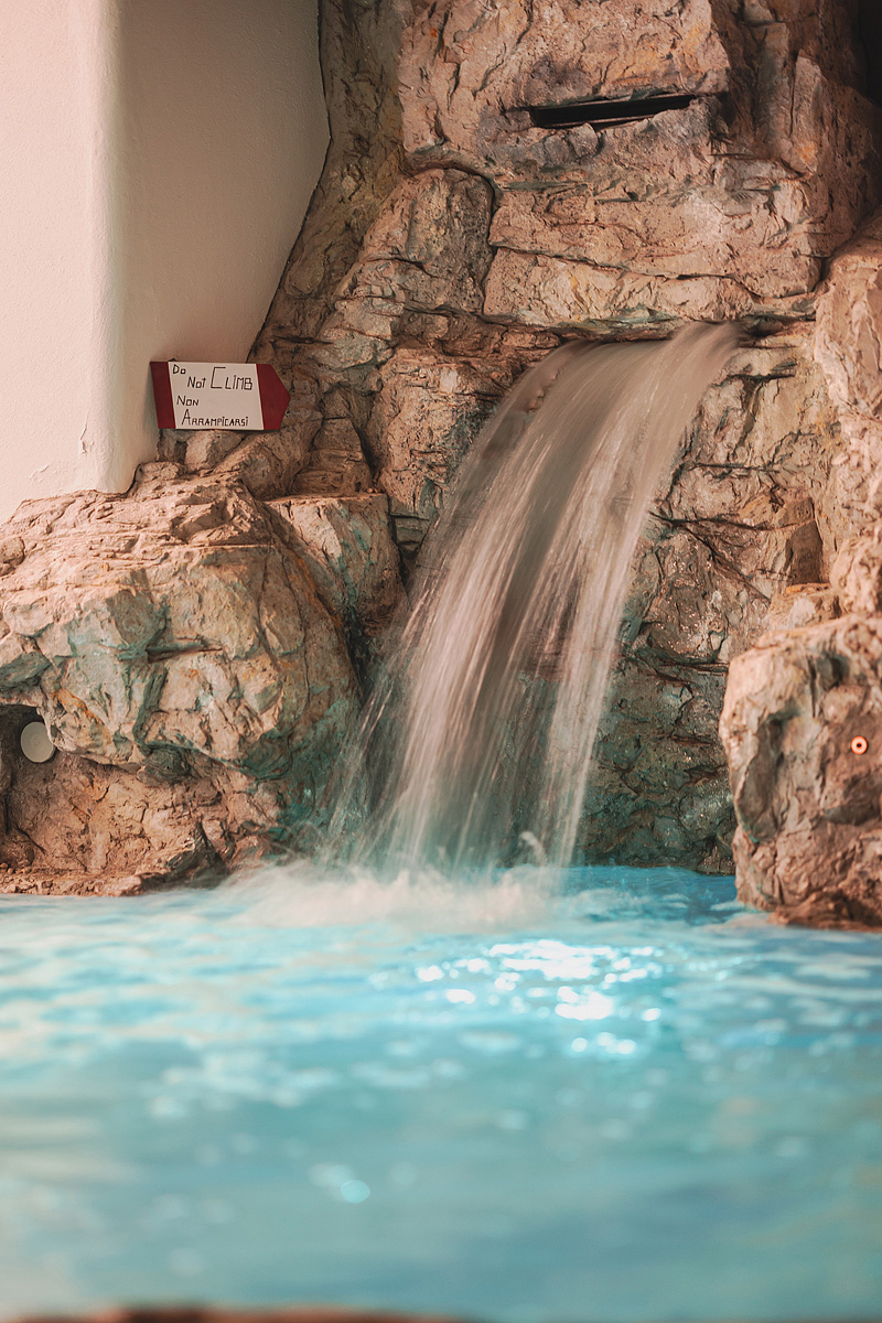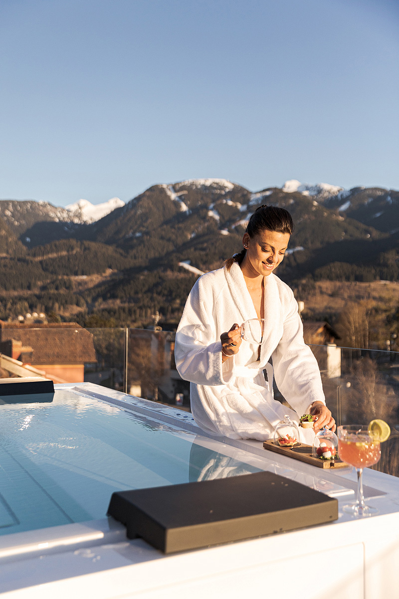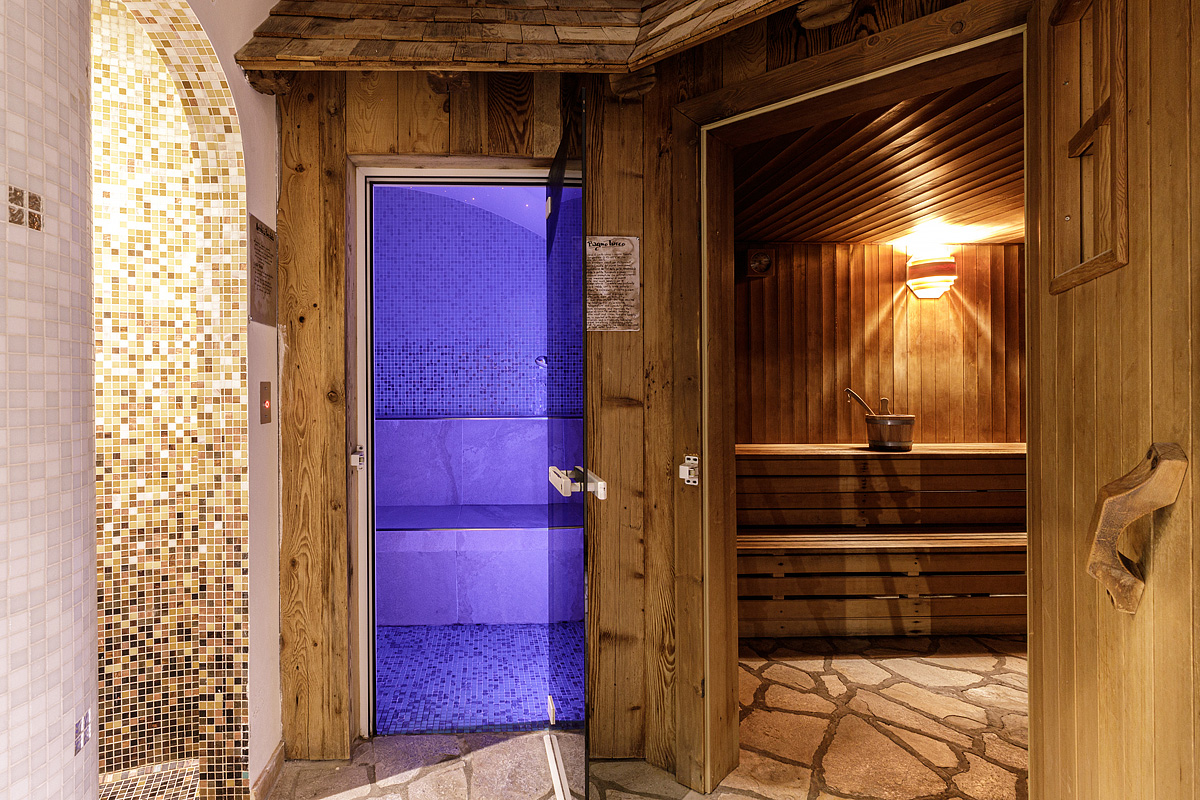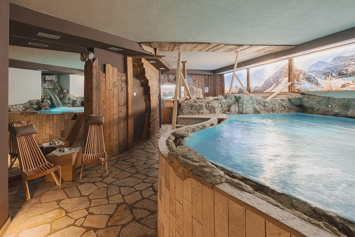 3x vířivka#, sauna#, pára#, termárium#, Kneippův chodník#, multifunkční sprcha#, relaxační koutek# s lehátky, masáže*, kosmetické služby*; služby označené # mohou využívat děti do 15 let jen v doprovodu dospělé osoby; střešní relaxační centrum: venkovní vířivka*, sauna*, pára*, 2x multifunkční sprcha*, relaxační koutek* s krbem a lehátky (jen na vyžádání)