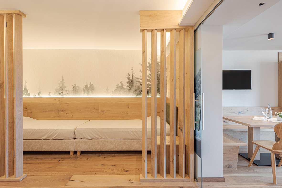 další typy pokojů - za příplatek lze objednat další nadstandardní pokoje Living Family Suite 4/5/6, Junior Suite La Pieve 2/3/4 a Spa Suite 2/3/4 (až 60 m² se 2 sociálními zařízeními, oddělenými pokoji, bio saunou…)