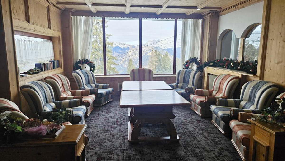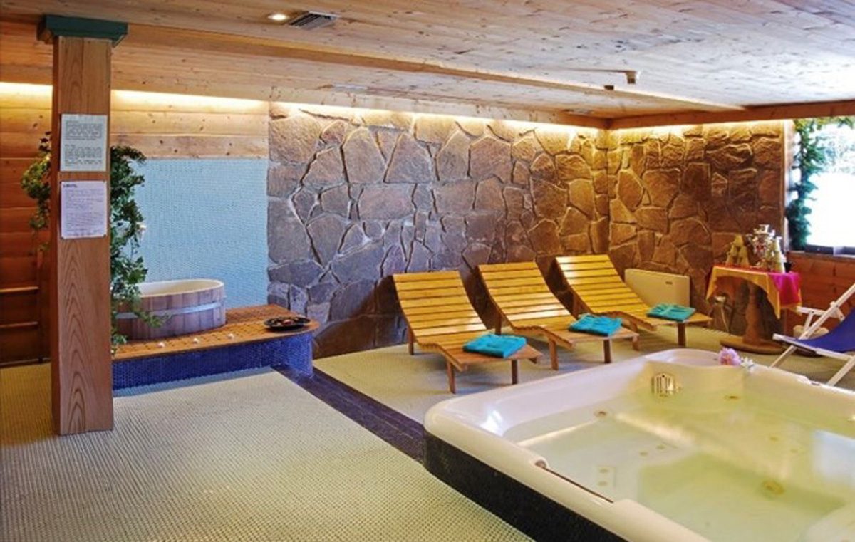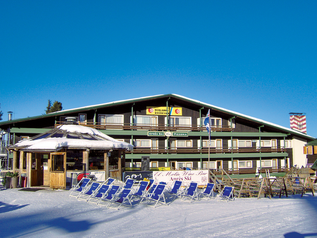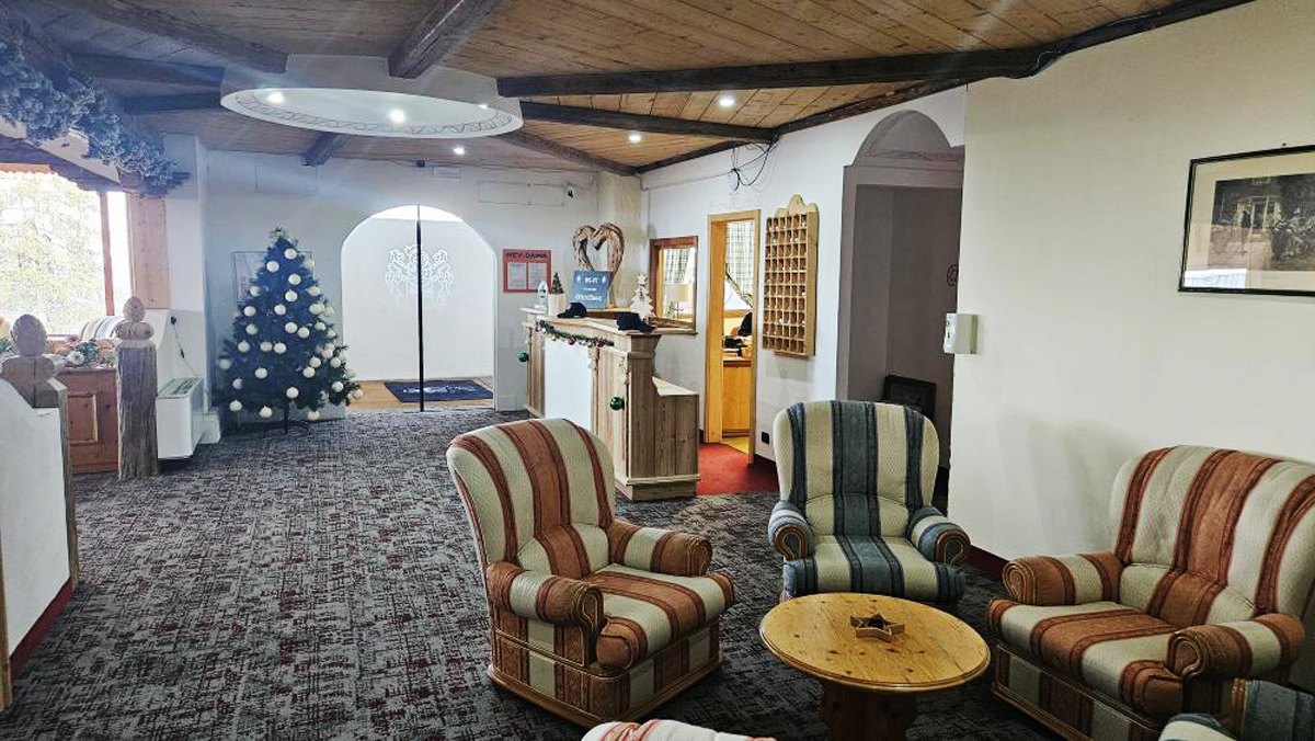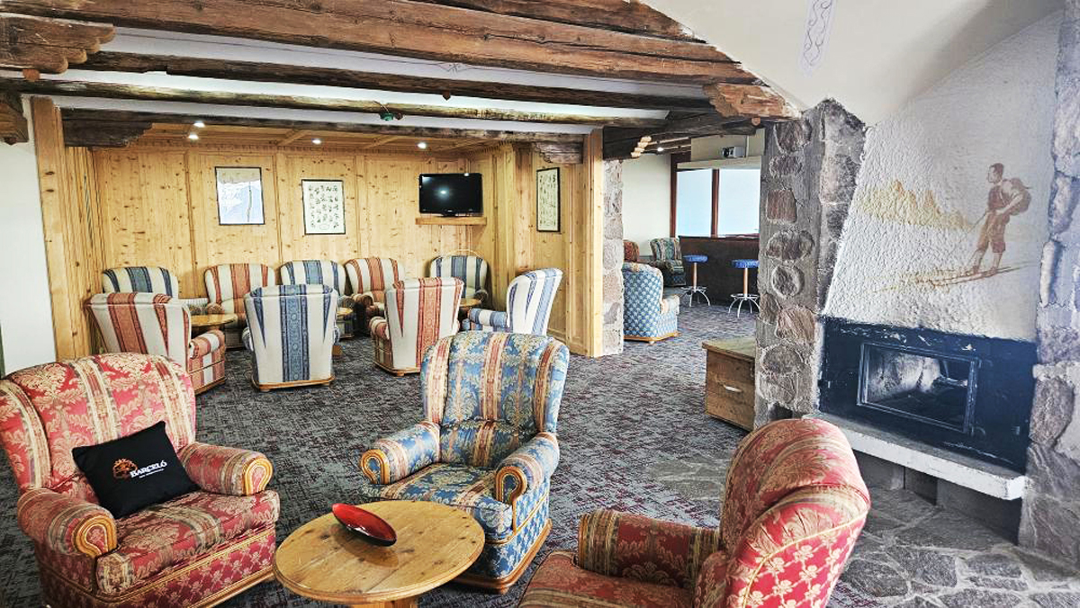 recepce / menší lobby s krbem / bar, restaurace / pizzerie self servis na svahu jen na obědy, restaurace, venkovní apres ski bar u sjezdovky se sluneční terasou a lehátky, společenská místnost s TV sat., menší sluneční terasa s lehátky, dětský koutek, hotelový trezor