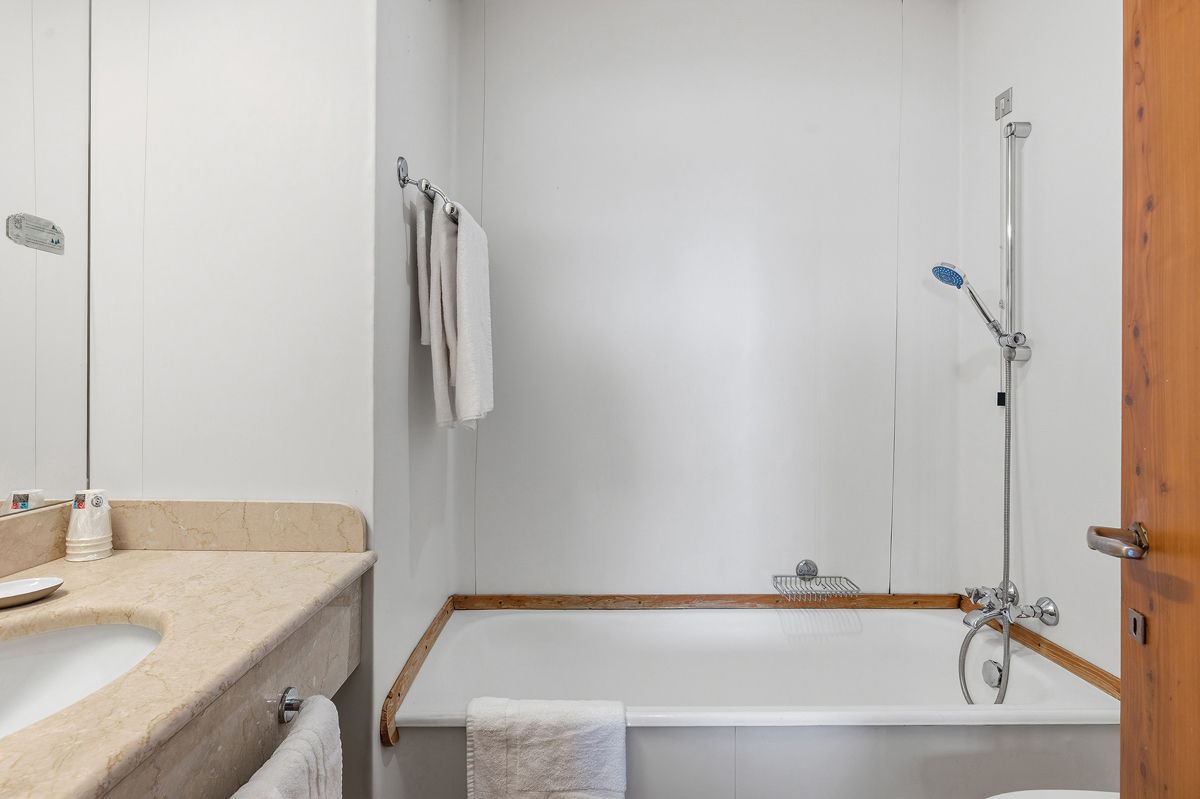 pokoj se samostatným lůžkem či s manželskou postelí a případně rozkládací gauč na lůžko, sociální zařízení se sprchou či vanou, balkon (s výjimkou jednolůžkových pokojů)