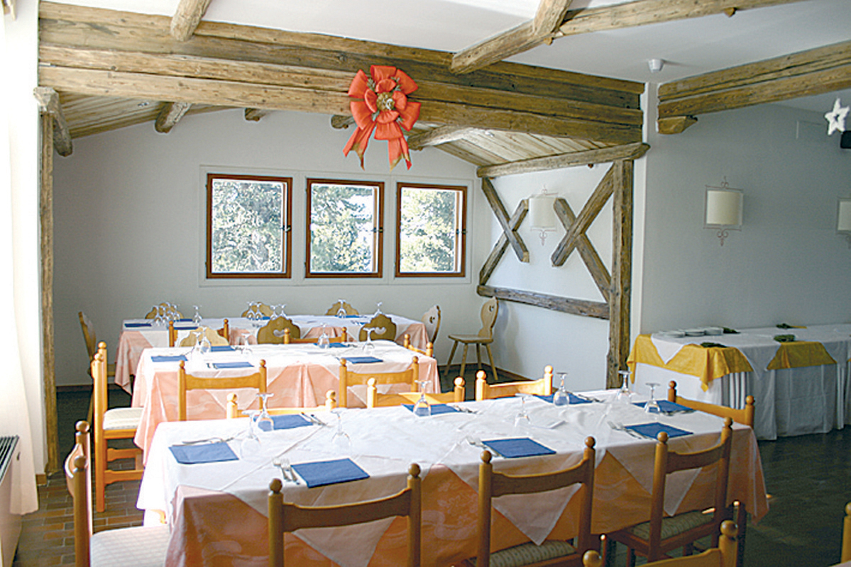 recepce / menší lobby s krbem / bar, restaurace / pizzerie self servis na svahu jen na obědy, restaurace, venkovní apres ski bar u sjezdovky se sluneční terasou a lehátky, společenská místnost s TV sat., menší sluneční terasa s lehátky, dětský koutek, hotelový trezor, úschovna lyží a lyžařských bot, půjčovna a servis lyžařského vybavení