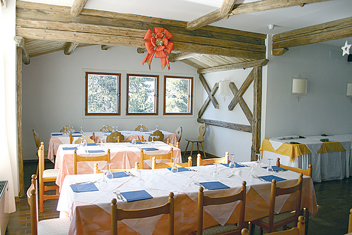 recepce / menší lobby s krbem / bar, restaurace / pizzerie self servis na svahu jen na obědy, restaurace, venkovní après ski bar u sjezdovky se sluneční terasou a lehátky, společenská místnost s TV sat., menší sluneční terasa s lehátky, dětský koutek, hotelový trezor, úschovna lyží a lyžařských bot, půjčovna a servis lyžařského vybavení