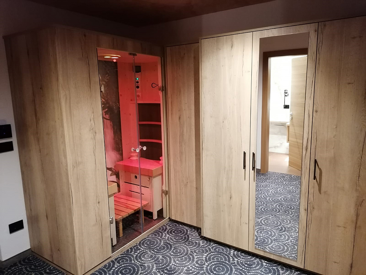 Suite 2 - pokoj s manželskou postelí, infrakabina, sociální zařízení, balkon (s výjimkou 1 pokoje)