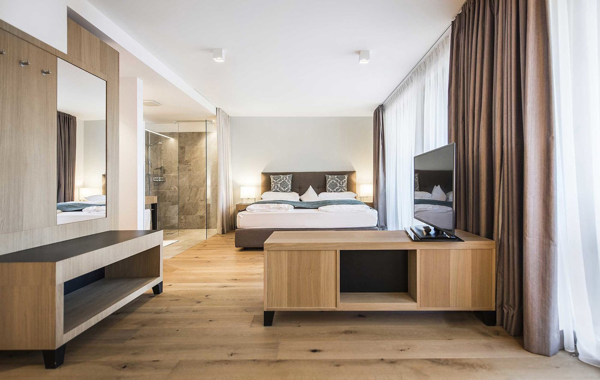 25 m² - pokoj s manželskou postelí a případně rozkládacím křeslem pro 1 osobu, sociální zařízení se sprchou či vanou, zpravidla balkon