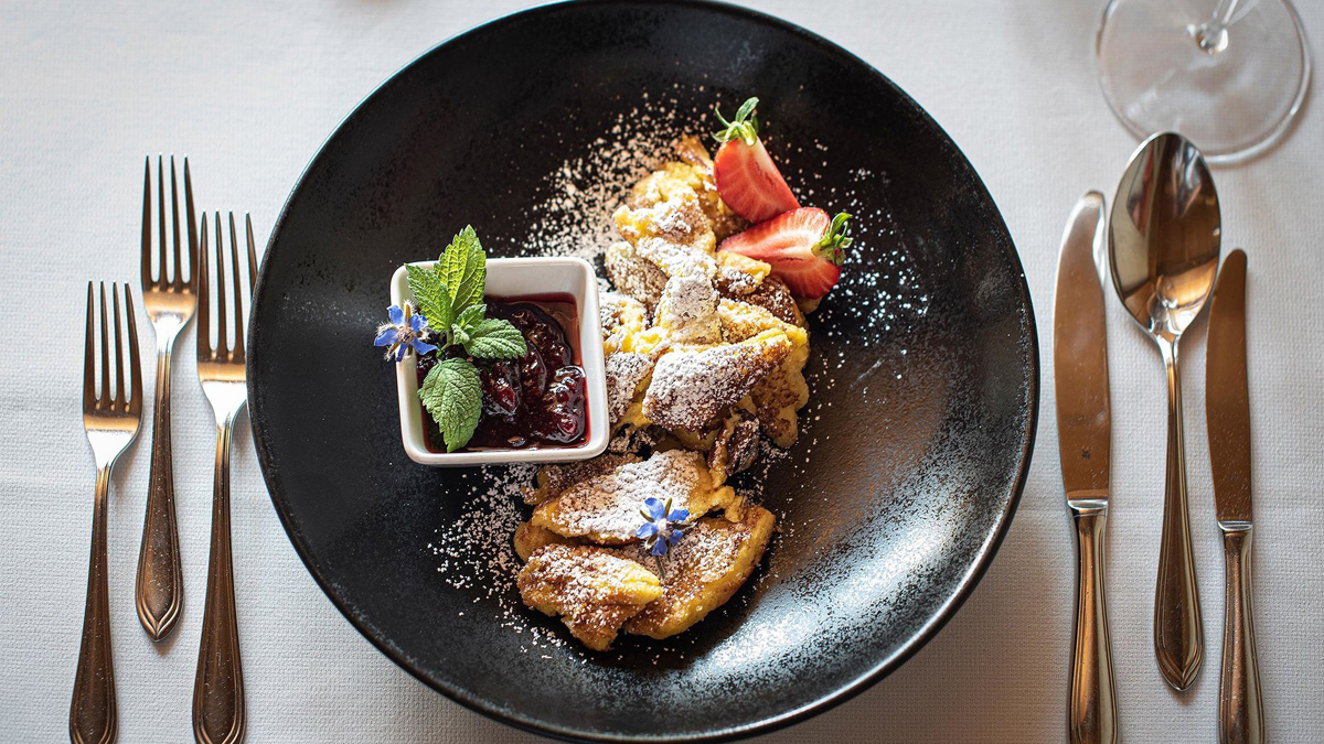 servírované menu s výběrem ze 2 až 3 teplých předkrmů a 2 až 3 hlavních jídel s přílohou, salátový bufet, servírovaný dezert či ovoce, nápoje za poplatek; nepravidelné tematické večeře