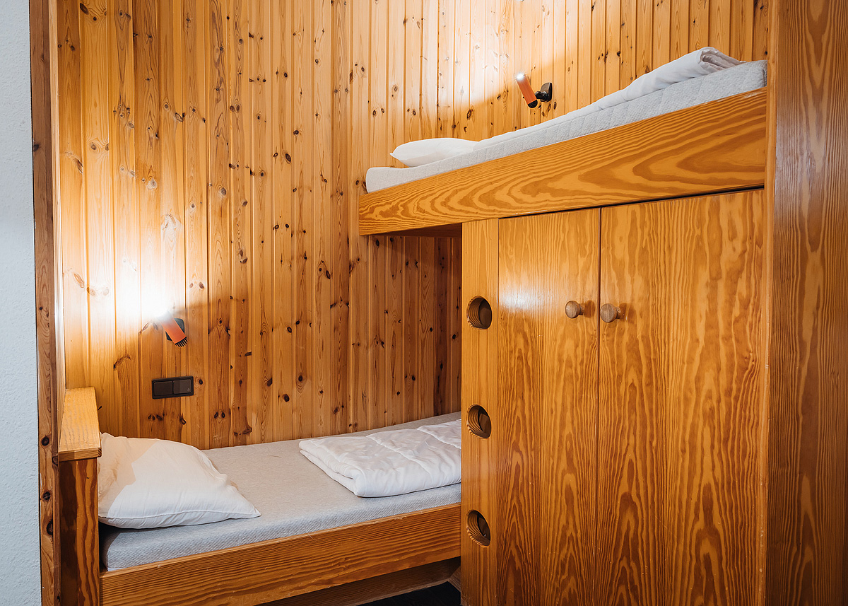 35 m² - obývací pokoj se skříňovou manželskou postelí, předsíň s mimoúrovňovou palandou oddělená zašupovacími dveřmi, kuchyňský kout v rámci obývacího pokoje či předsíně, sociální zařízení zpravidla s vanou, balkon na vyžádání a za poplatek 15€/apartmán/noc