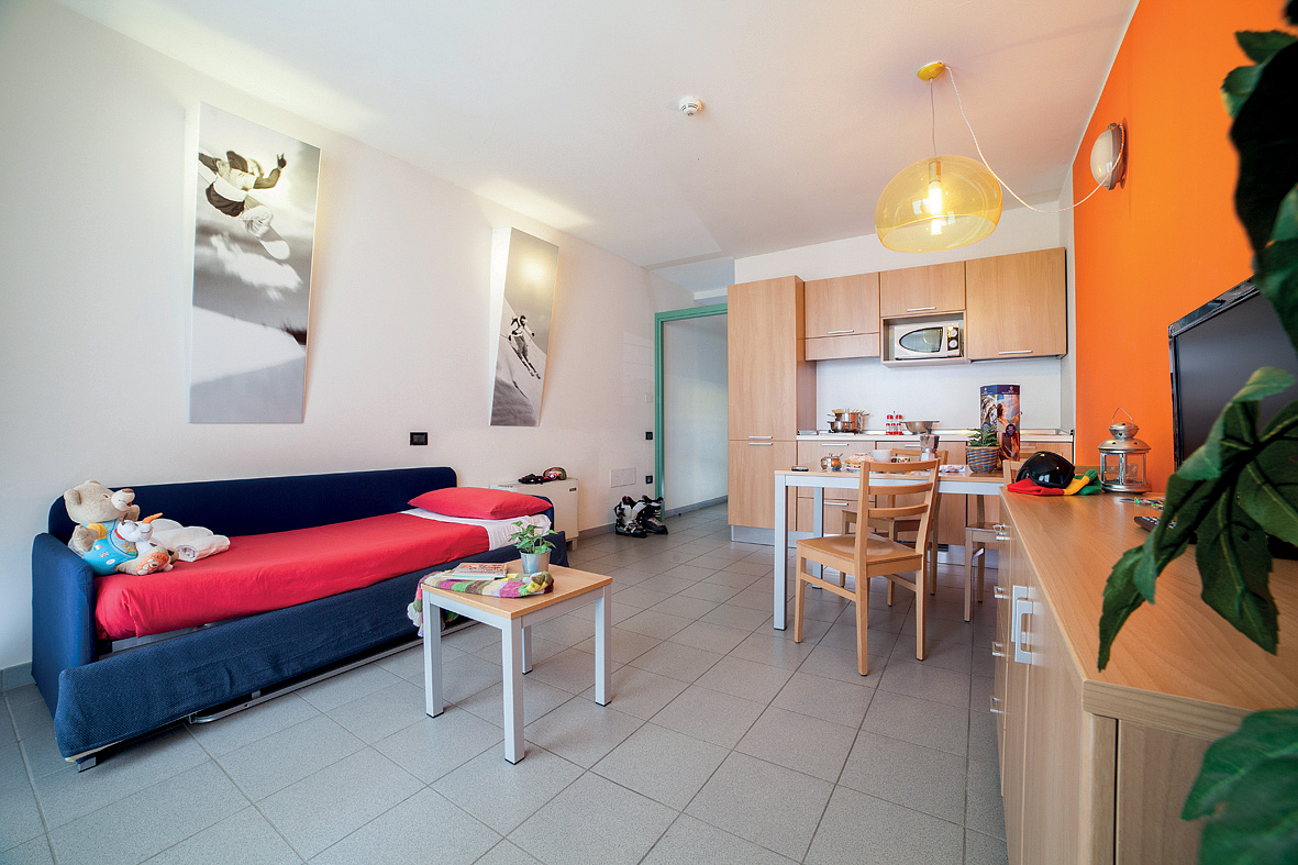 recepce / lobby / wi-fi připojení k internetu, 2x restaurace, 2x bar, kongresové sály (celkem až 810 míst), miniklub (od 3 do nedovršených 12 let v italském jazyce), animační programy (v italském jazyce), úschovna lyží a lyžařských bot, výtah, pračka*, půjčovna lyžařského vybavení*, lyžařská škola*, minimarket, obchod s oblečením