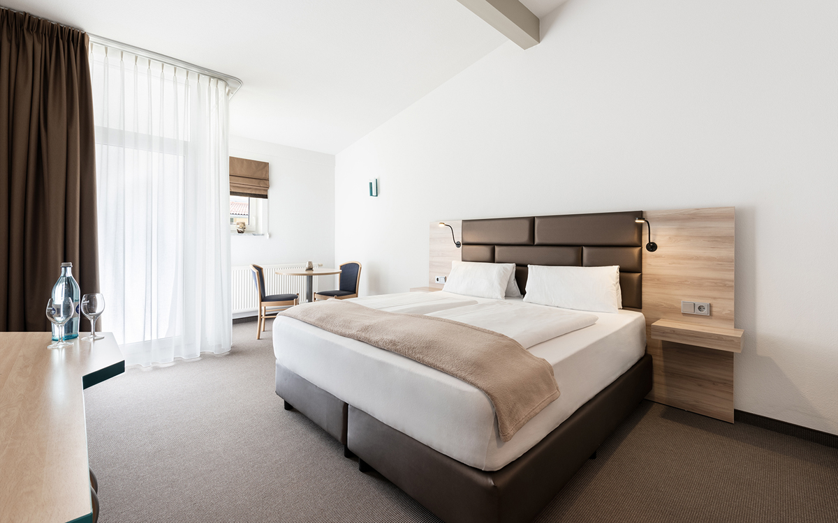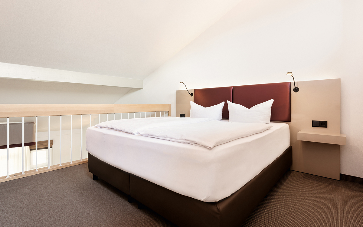 25 až 30 m² - pokoj s manželskou postelí a případně rozkladacím gaučem či přistýlkou pro 1 dítě do nedovršených 15 let, sociální zařízení; pokoje leží v hlavní budově, sdílený balkon či terasa