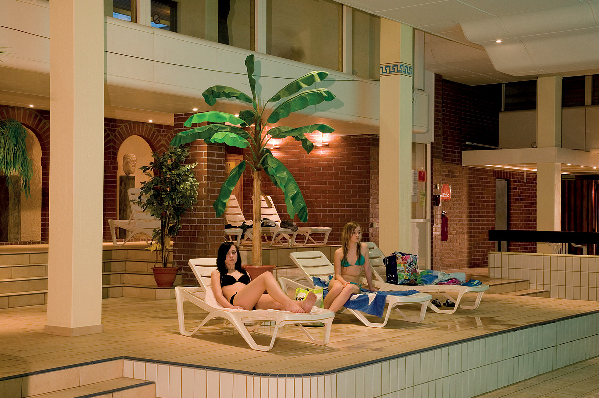 vodní svět o velikosti 1.500 m² - bazén s protiproudem a vodopádem, dětský bazén, finská sauna*, bio sauna*, relaxační koutek s lehátky*, masáže*, kosmetické služby*, velká posilovna*