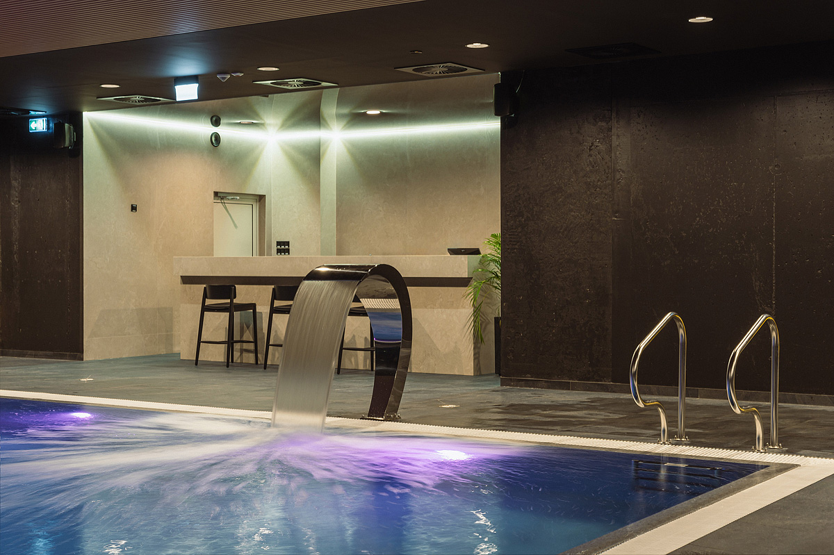 umístěno v hotelové budově A, venkovní a vnitřní bazén s termální vodou 34-40 C, dětský bazén, vířivky, posilovna, saunový komplex*, masáže a procedury*, kosmetický salón*