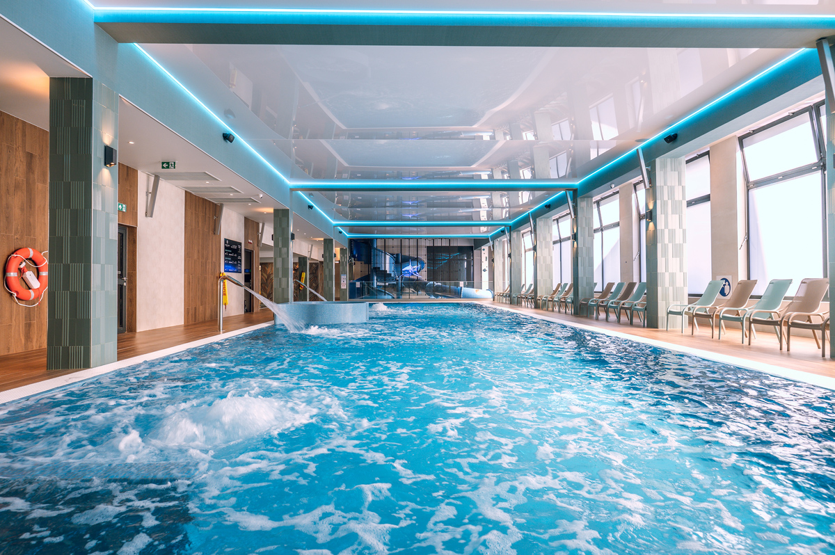 aquapark: vnitřní bazén (relaxační zóna), bazén s plaveckými dráhami (sportovní zóna), brouzdaliště s atrakcemi pro děti (vodní dětská zóna), vodní bar, venkovní bazén s vyhřívanou vodou a tobogánem (v provozu v letní sezóně)sauny, saunové ceremoniály*, masáže*, kosmetické služby a procedury*