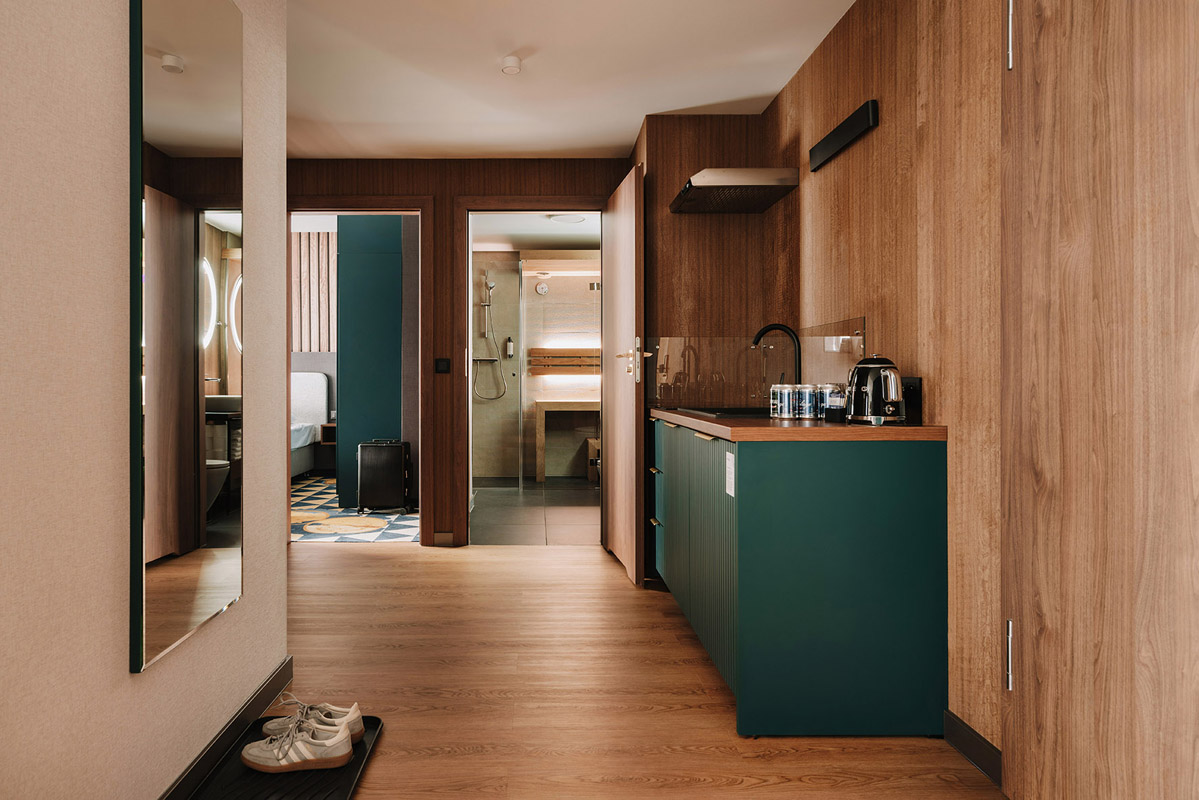 • moderní designové pokoje a prostorné apartmány s plně vybavenou kuchyňkou