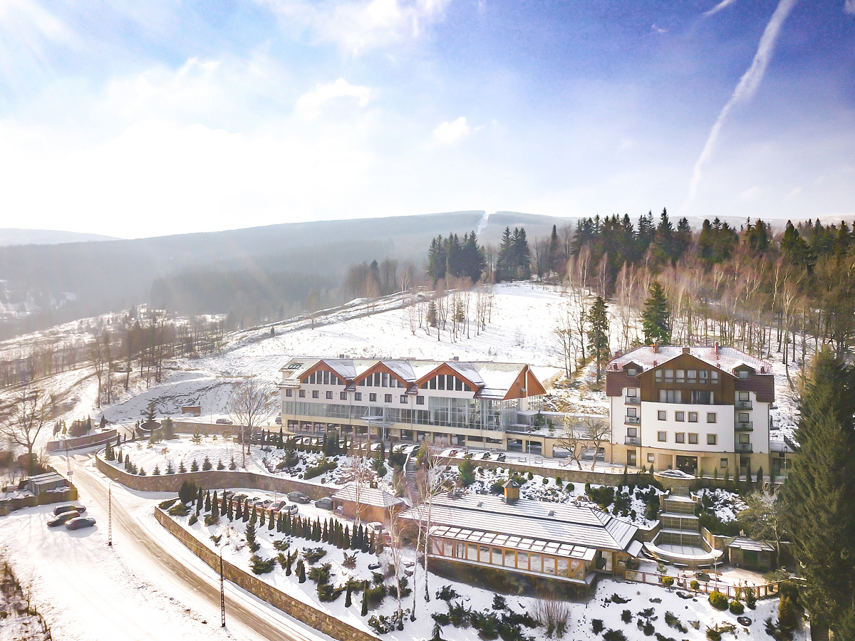 hotelový areál se skládá ze 2 sekcí, tříhvězdičkový objekt, kde se nachází hotelové pokoje a čtyřhvězdičková sekce, kde se nachází restaurace, recepce, bazén a wellness centrum, rodinné apartmány jsou umístěny ve vedlejší budově (dependance), vzdálenost od hotelu činí 50 metrů
