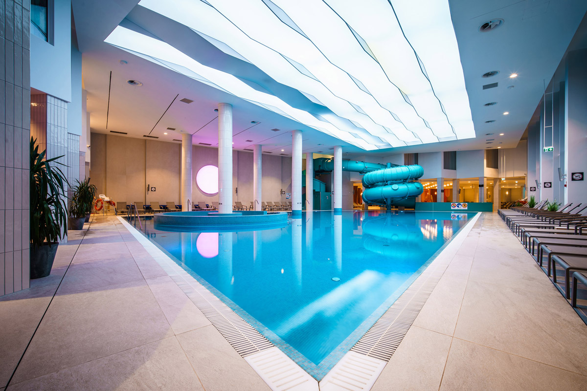 zcela moderní pětihvězdičkový hotel na svahu Góra Bukowa ve středisku Wisła tvoří tříkřídlová budova, součástí komplexu je i hotelový aquapark s veškerými atrakcemi