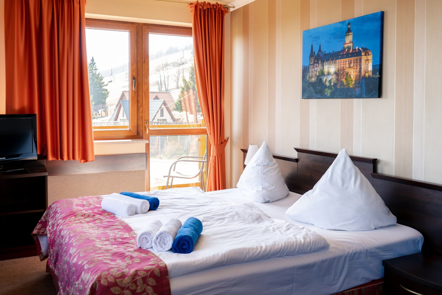 pokoj s manželskou postelí či 2 samostatnými lůžky, sociální zařízení