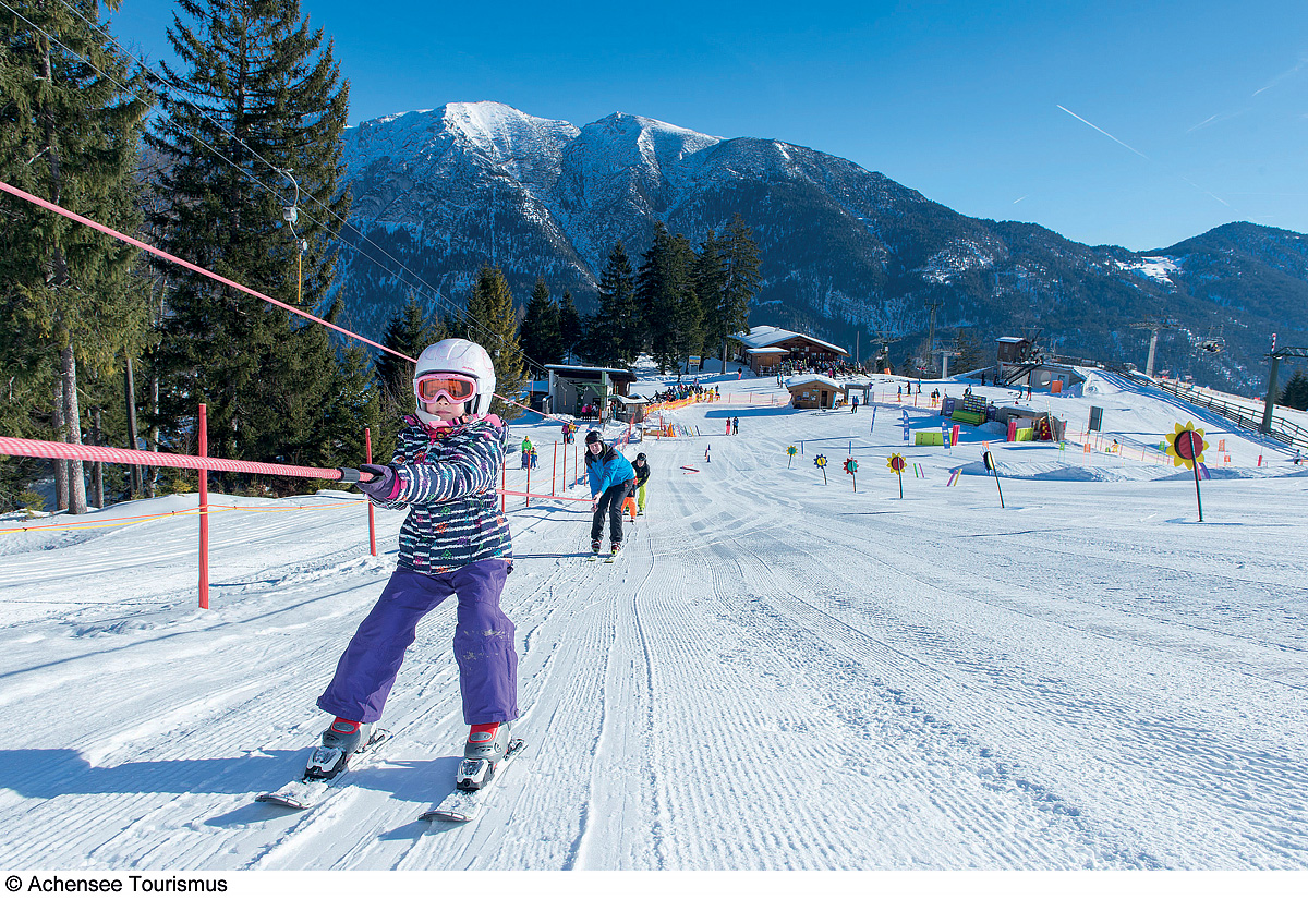3 vzájemně nepropojené středně velké skiareály Christlum, Rofan a Karwendel (Zwölferkopf) nabízejí spolu se 3 areály malými celkem 53 km sjezdovek všech náročností.