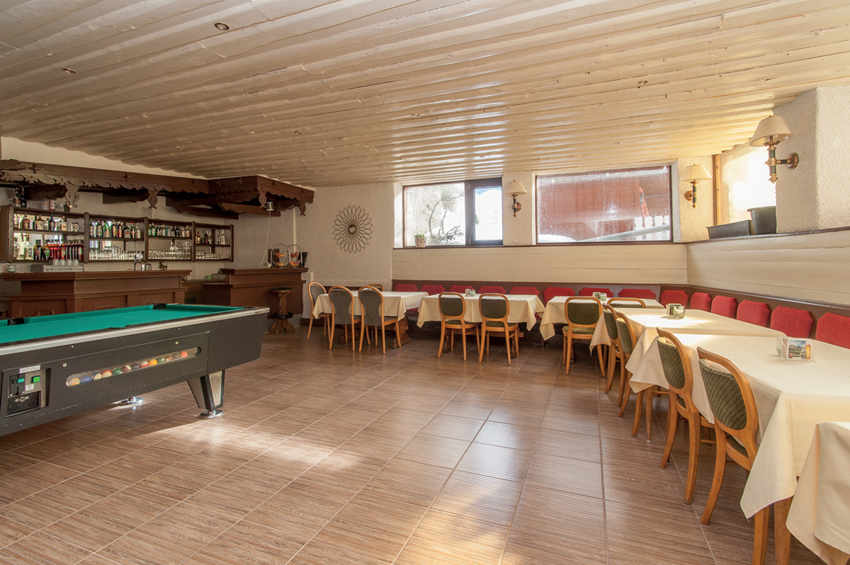 recepce, restaurace vyhrazená pro hotelové hosty, bar, wi-fi připojení k internetu, sluneční terasa s posezením, místnost pro úschovu zavazadel, úschovna lyží a lyžařských bot, vyhrazené parkoviště
