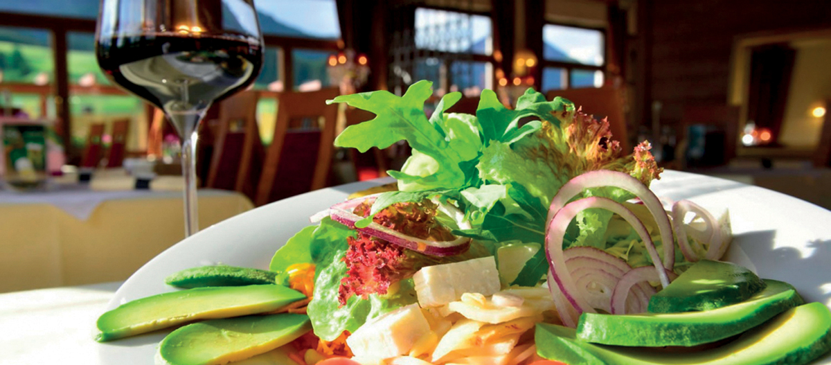 servírované 3chodové menu s výběrem hlavního jídla s přílohou, servírovaný předkrm či polévka a zpravidla salát či dezert, nápoje za poplatek