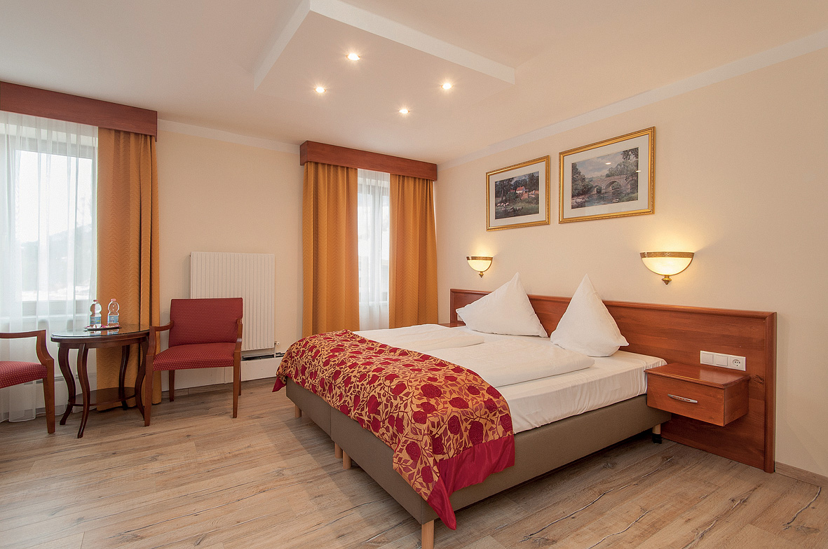 17 až 20 m² - pokoj s manželskou postelí, sociální zařízení se sprchou či vanou; infant nad rámec maximální obsazenosti pokoje není povolen; pokoje jsou vždy v dependanci