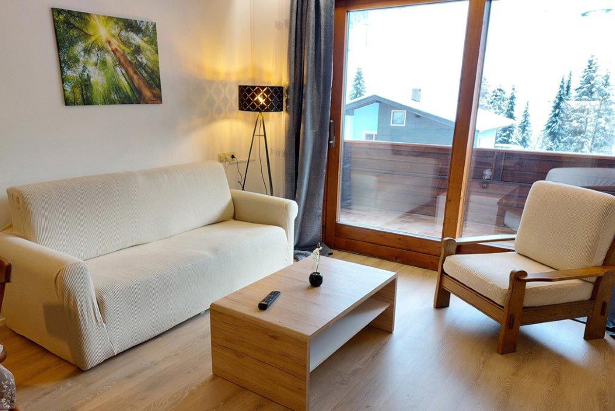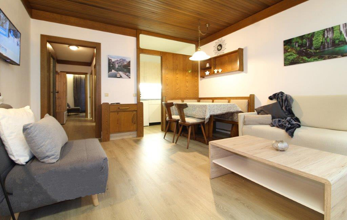 31 m² - obývací pokoj s kuchyňským koutem, manželskou postelí a rozkládacím gauřem pro 1 osobu, sociální zařízení, předsíň, balkon