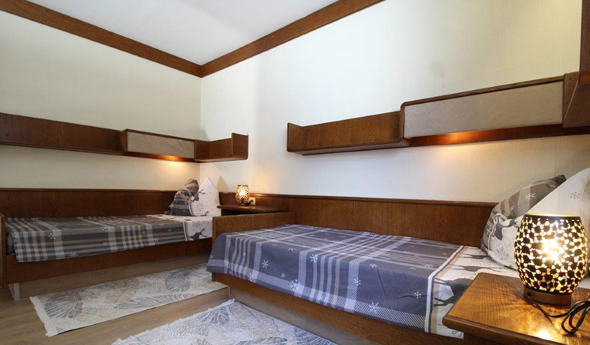 78 m² - ložnice s manželskou postelí a 1 samostatným lůžkem, ložnice se 2 oddělenými lůžky, obývací pokoj s kuchyňským koutem, sociální zařízení se sprchou či vanou, oddělené WC, balkon