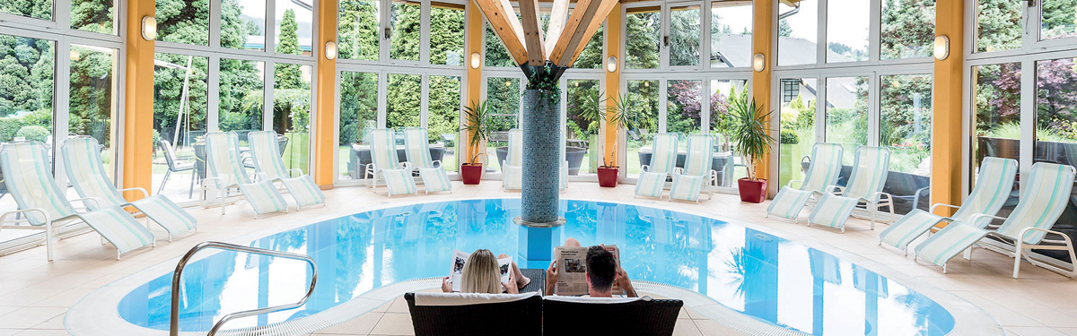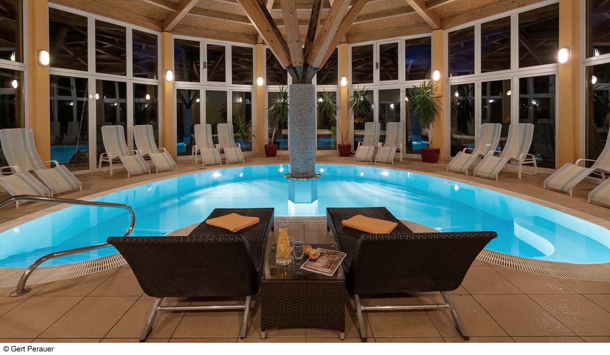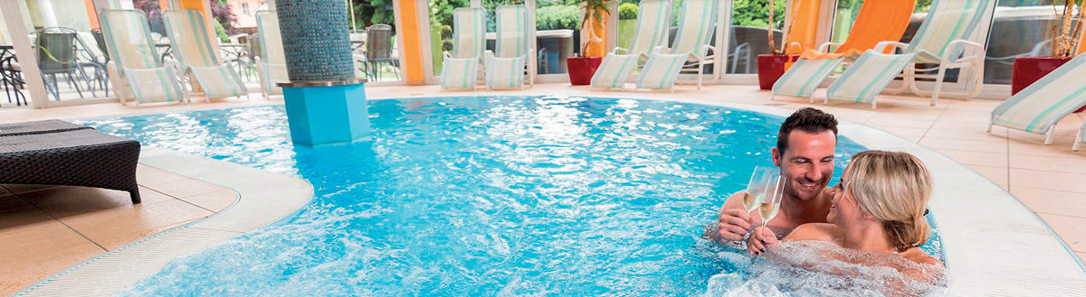 bazén s protiproudem, vířivka, sauna, pára, infrakabina, relaxační koutek s lehátky, posilovna, stolní fotbal