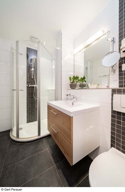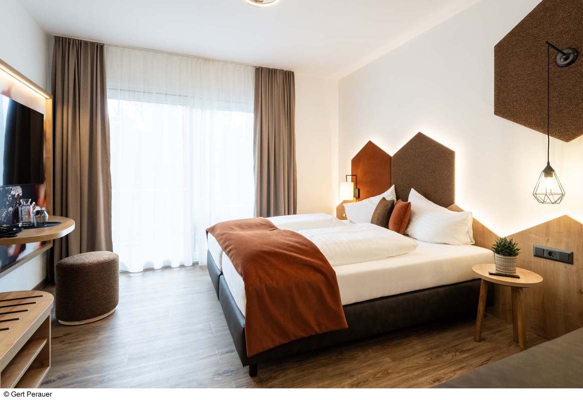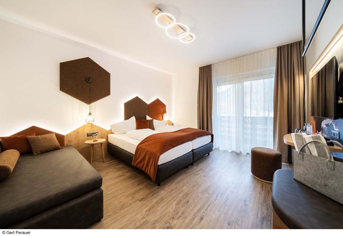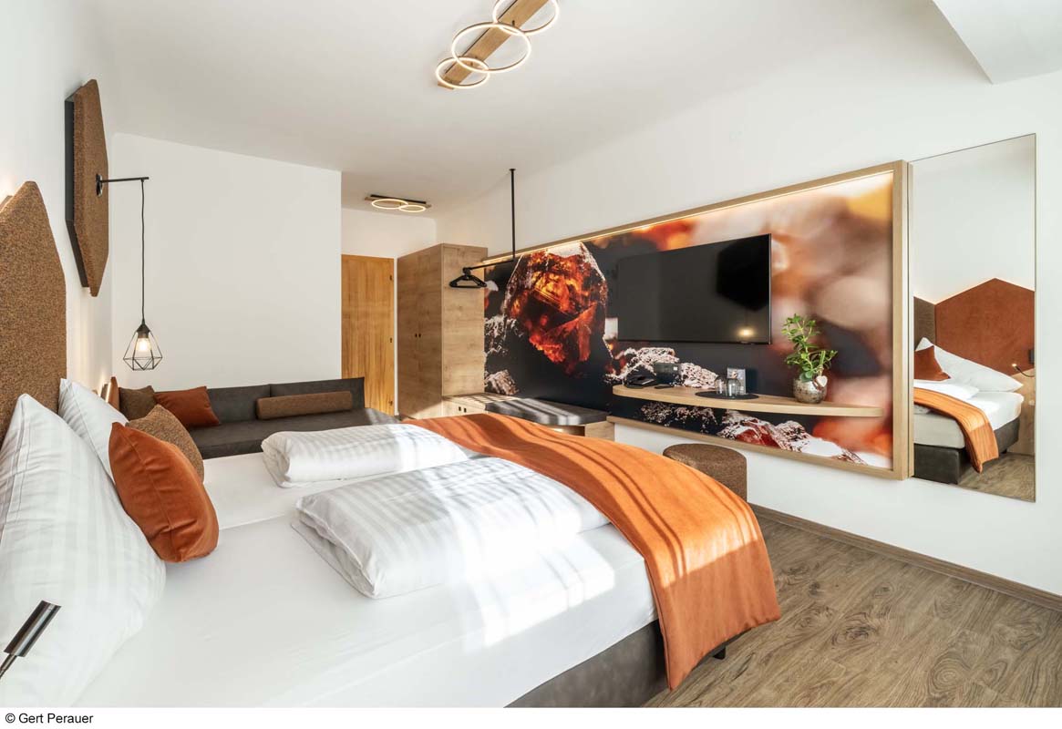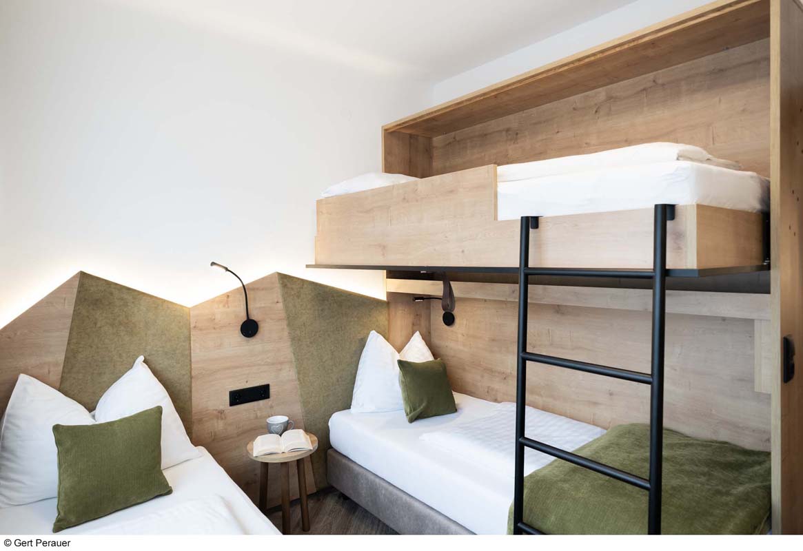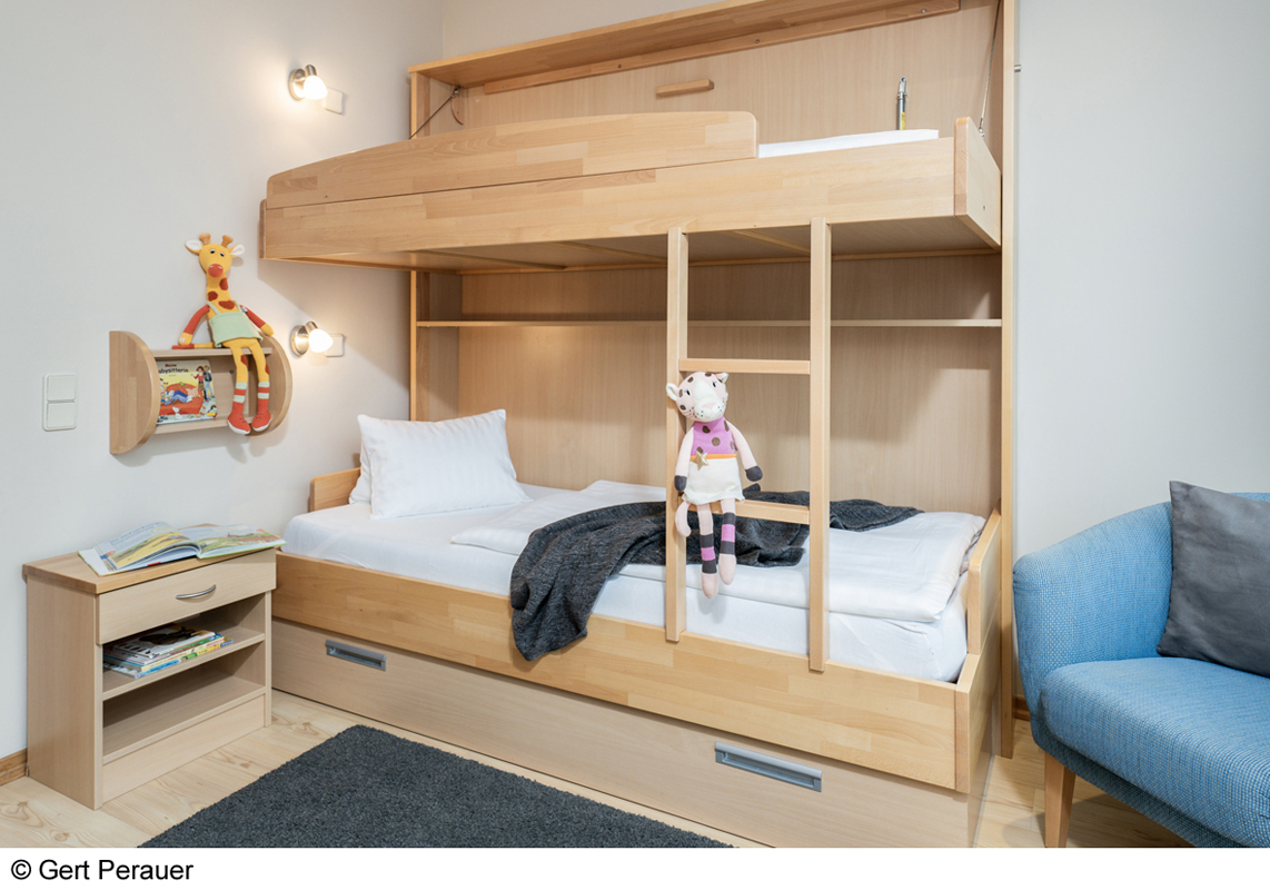 30 až 35 m² - pokoj s atypickou palandou, obývací pokoj s manželskou postelí, sociální zařízení, balkon; minimální obsazenost pokoje jsou 2 dospělé osoby a 2 děti od 6 let