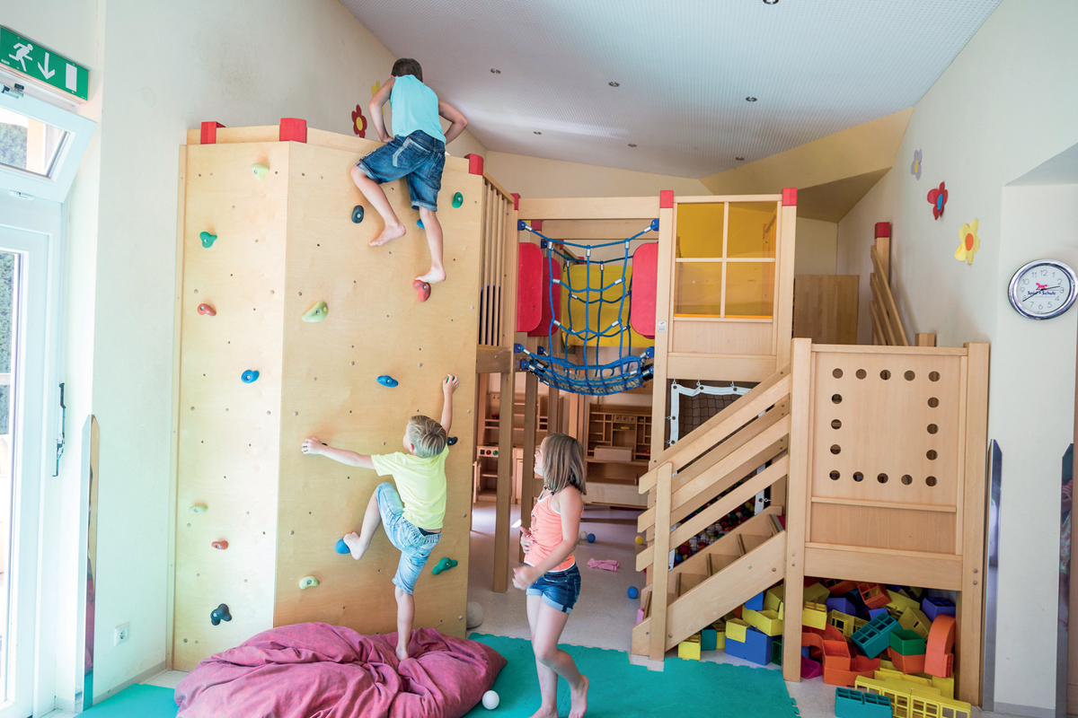 recepce, restaurace vyhrazená pro hotelové hosty, stylová restaurace / bar, společenská místnost s TV a krbem, sluneční terasa s posezením, zimní zahrada, velká herna s dětskou lezeckou stěnou, úschovna lyží a lyžařských bot, výtah, vyhrazené parkoviště