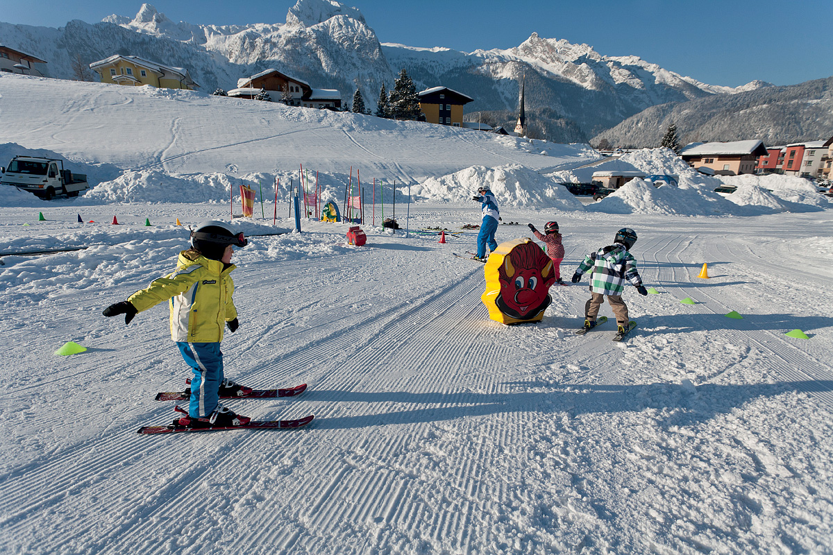 Příjemný rodinný skiareál Karkogel nabízí sjezdovky všech obtížností (a také 3 km dlouhou osvětlenou sáňkařskou dráhu), zatímco na protějším kopci se v Abtenau rozkládá areál Sonnleiten se 3 vleky, zcela ideální místo pro děti a začínající lyžaře.