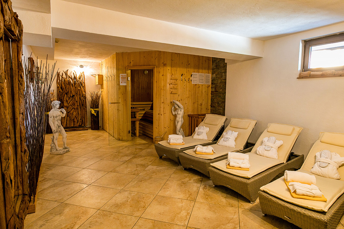bazén 7 x 4 m, finská sauna, bio sauna, infrakabina, 2x relaxační koutek, masáže*, posilovna, biliár*, stolní fotbal*, stolní tenis, krytý tenisový kurt*