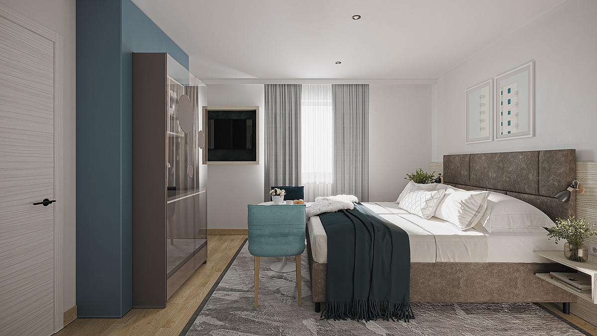 22 m² - pokoj s manželskou postelí, sociální zařízení