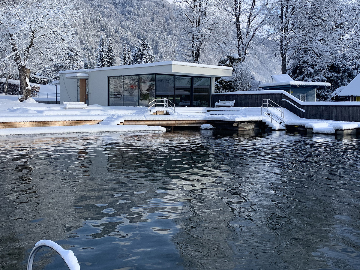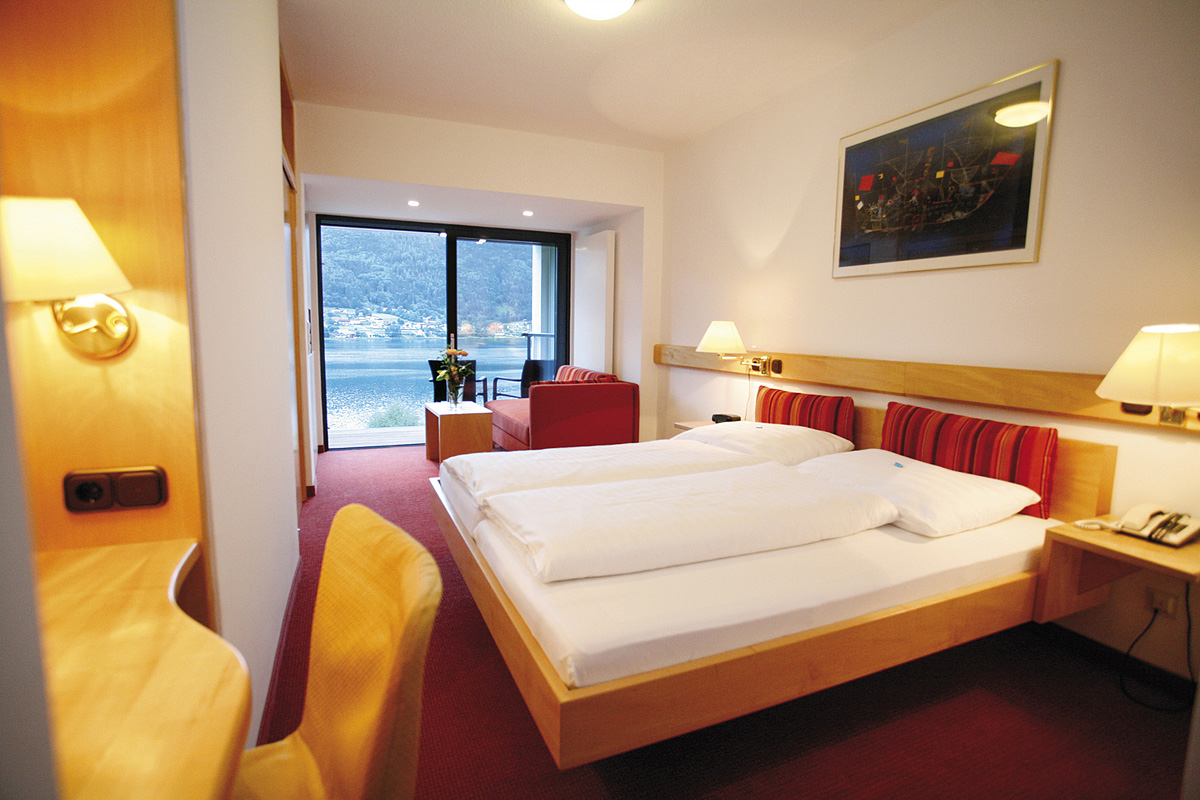 moderní hotel s romantickým výhledem na jezero Ossiacher See