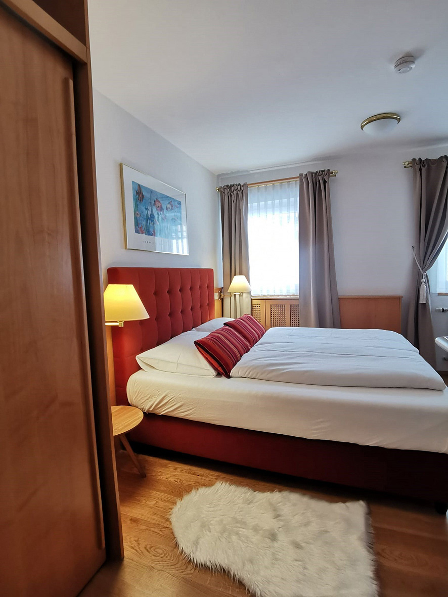 pokoj s manželskou postelí a případně rozkládacím gaučem či přistýlkou pro 1 osobu, sociální zařízení, zpravidla balkon; pokoje jsou orientovány na jižní stranu s výhledem na jezero a jsou v hlavní či vedlejší budově