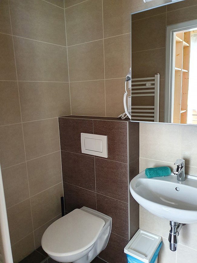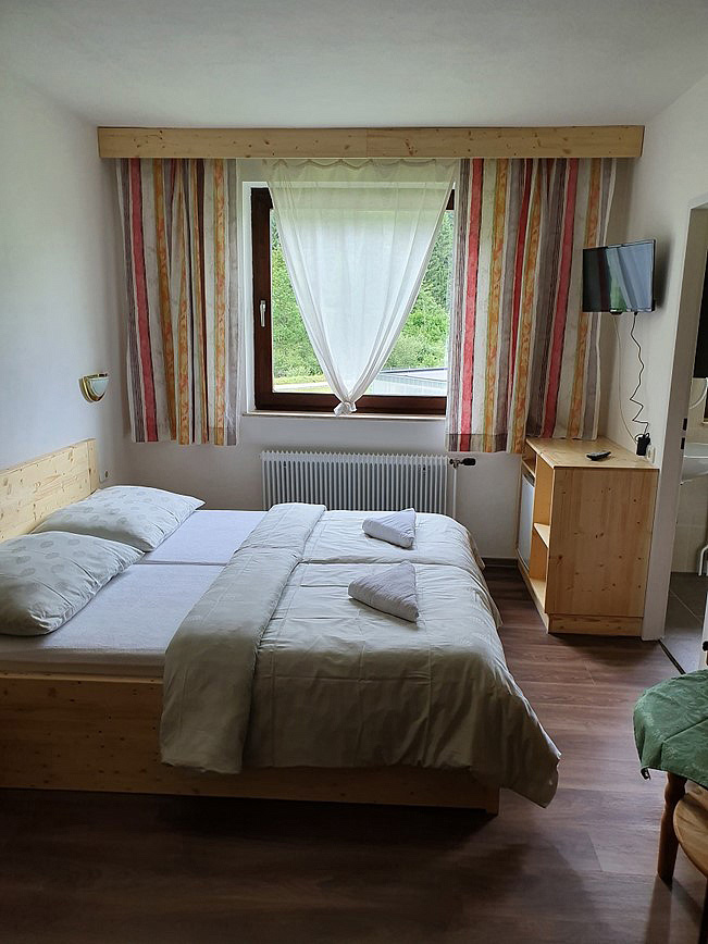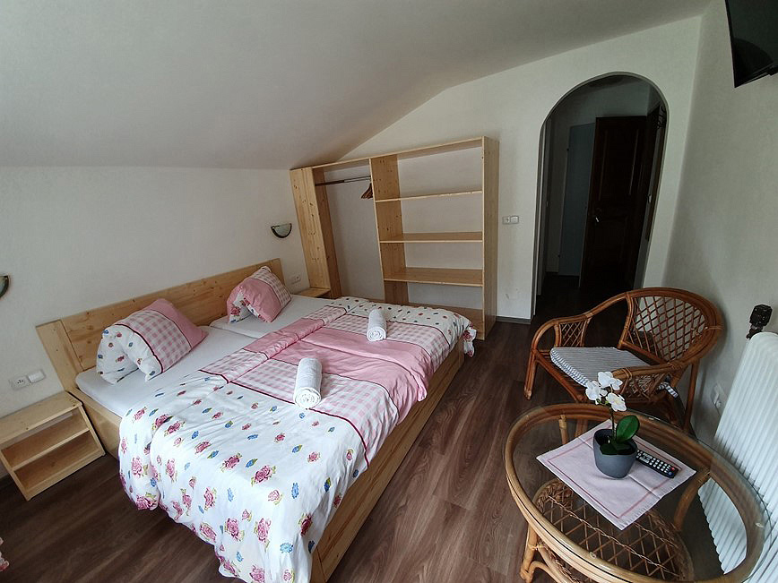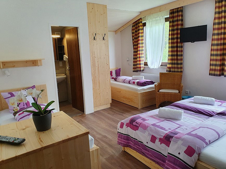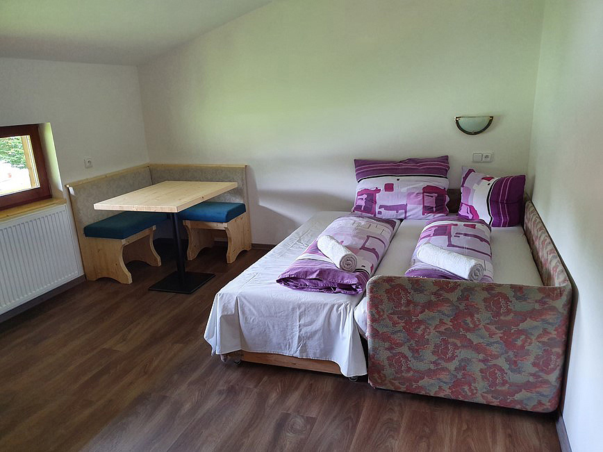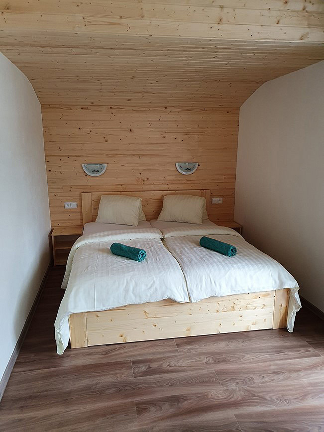 pokoj s manželskou postelí či 1 samosatným lůžkem, max. obsazení 1 osobou, sociální zařízení