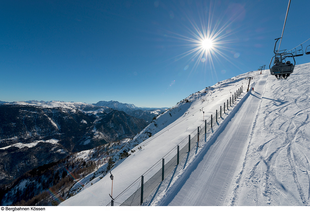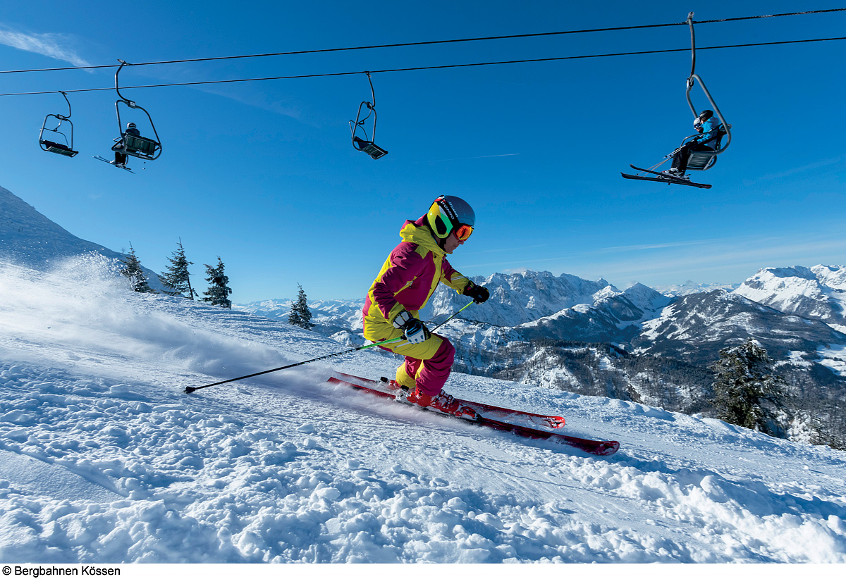 • oblíbené rodinné lyžařské středisko Hochkössen rozprostírající se na svazích 1.800 m vysoké hory Unterberghorn nad horským městečkem Kössen