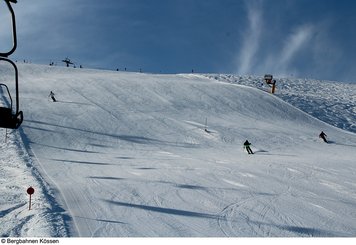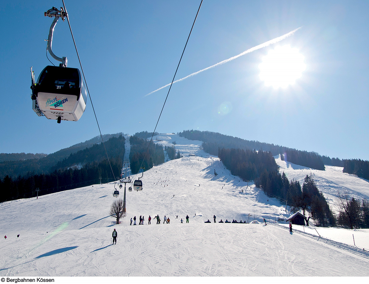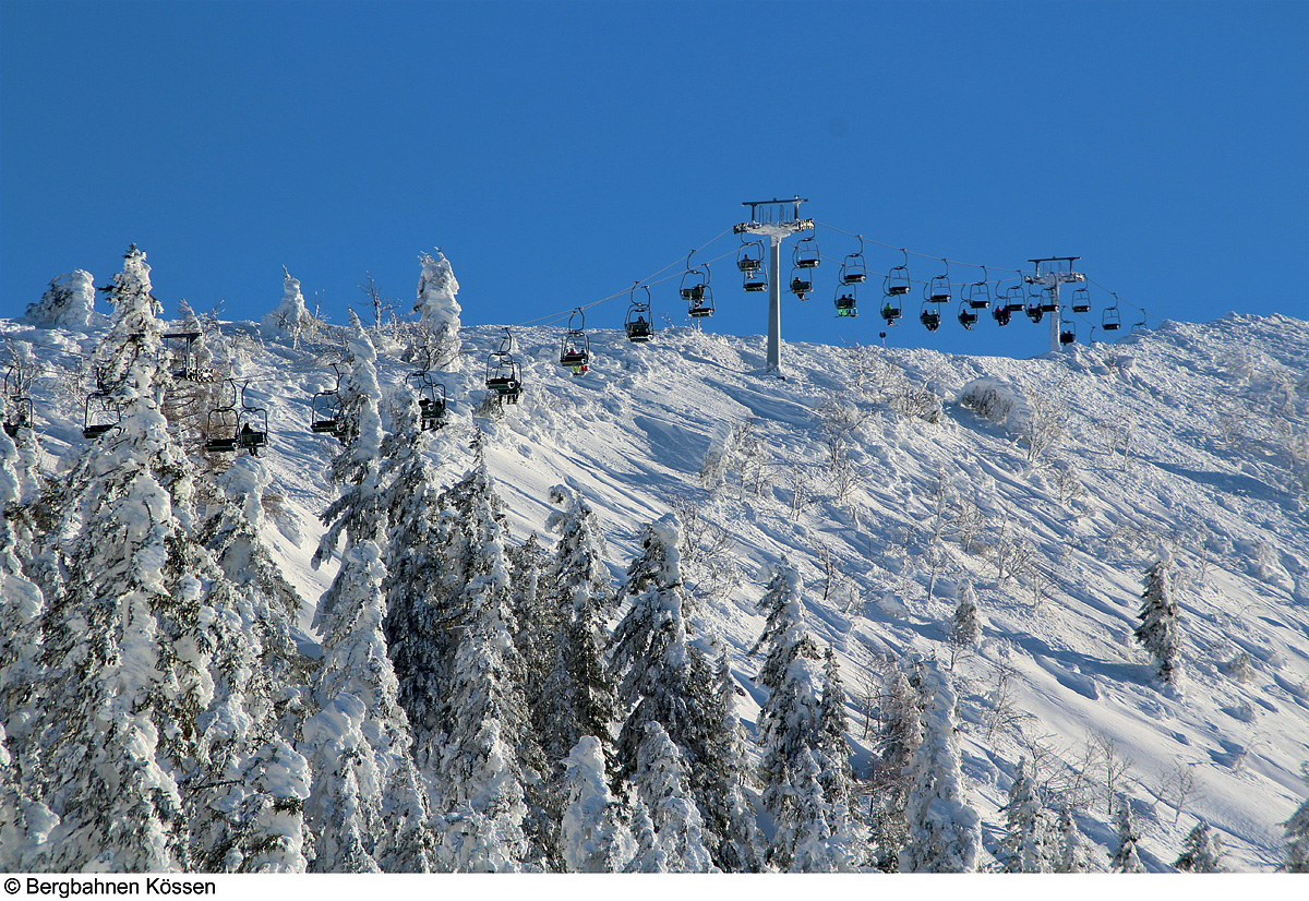 • moderní kabinová lanovka pro 6 osob vyjíždějící z Kössenu až k tradiční chatě Bärenhütte ve výšce 1.500 m n. m., k tomu další 3 sedačkové lanovky a 4 vleky