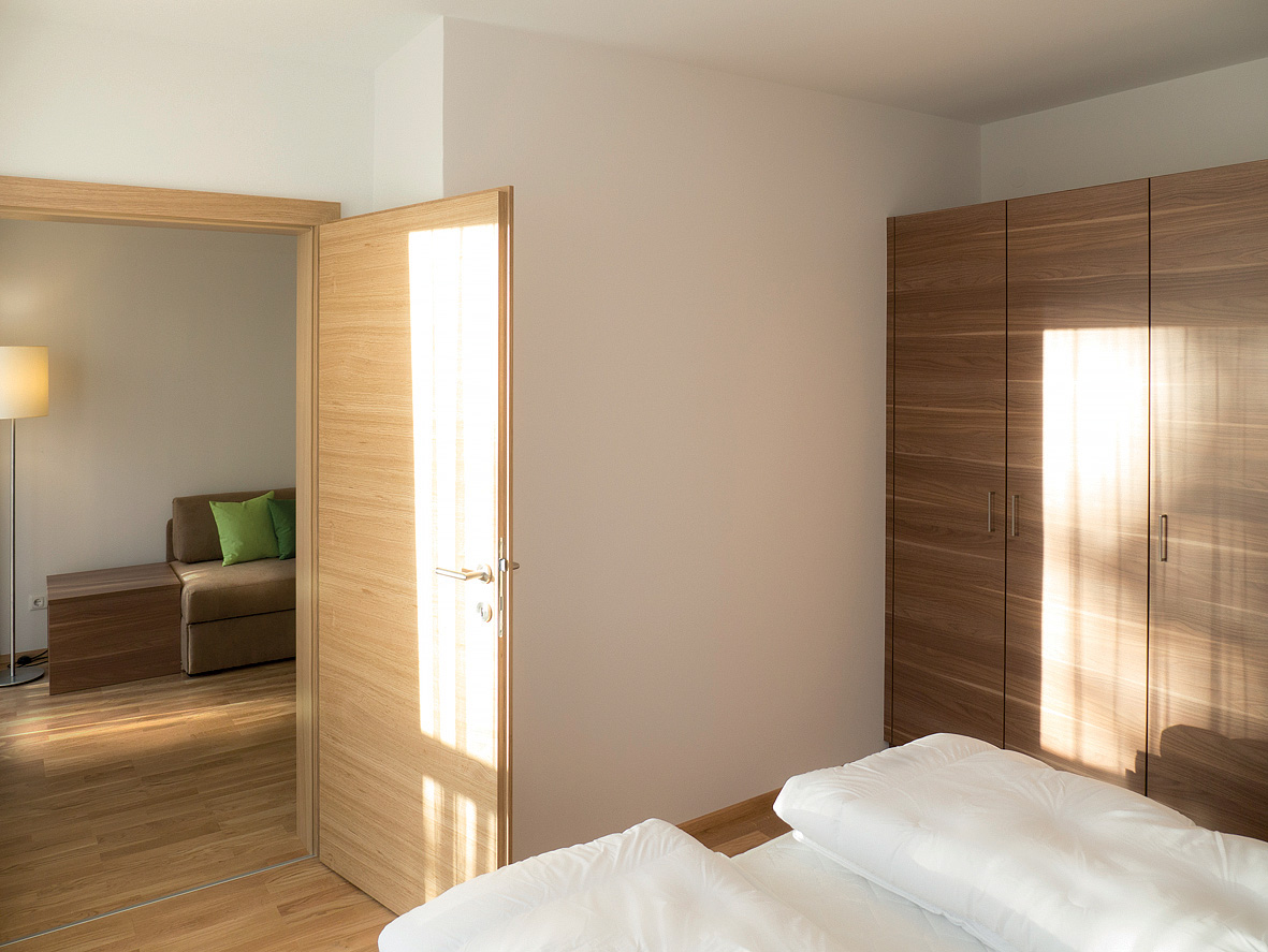 56 m² - 2 ložnice s manželskou postelí, obývací pokoj s kuchyňským koutem a rozkládacím gaučem pro 2 osoby, sociální zařízení, privátní infrasauna, 2x balkon