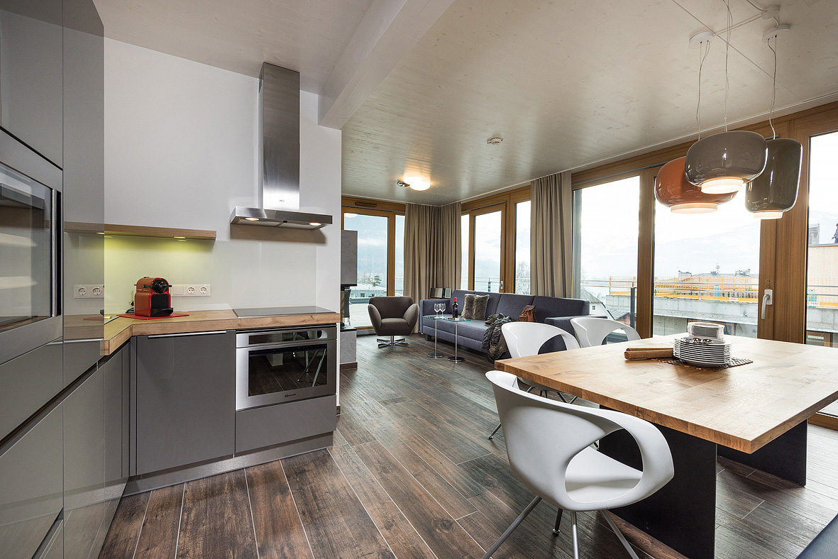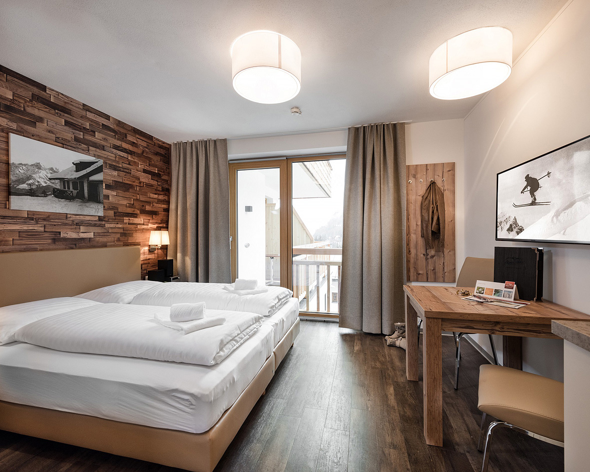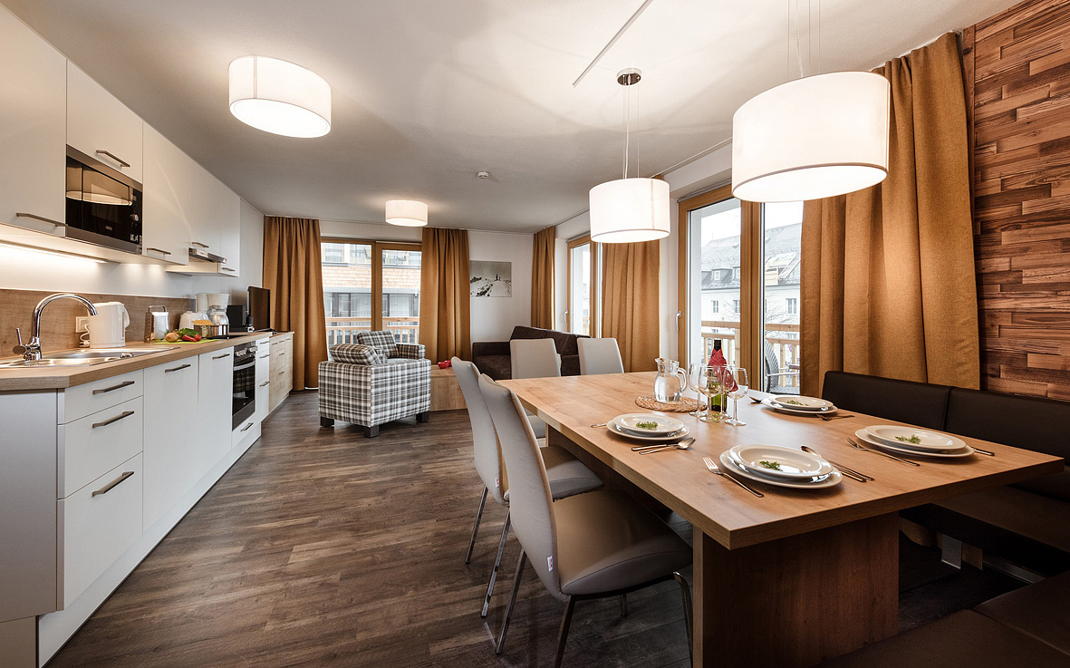 recepce, restaurace, ranní donáška čerstvého pečiva*, garážové stání (1 auto / apartmán do 2,20 m výšky; další pouze na vyžádání)
