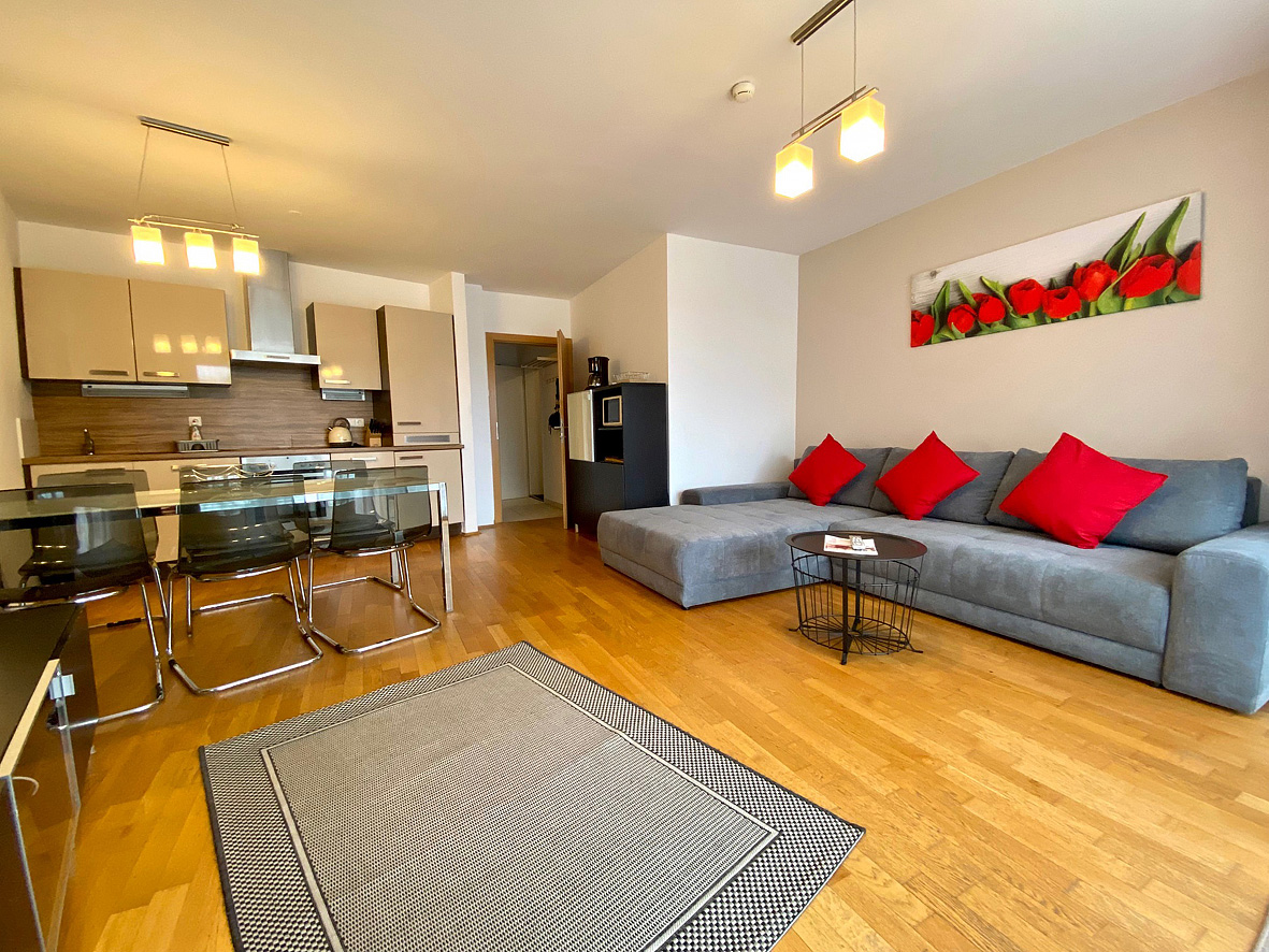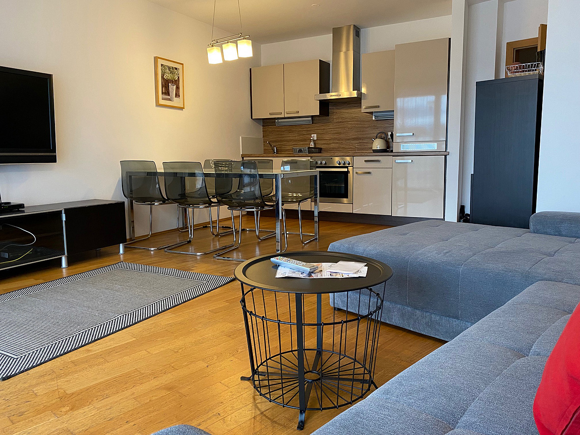 26 m² - obývací pokoj s manželskou postelí a rozkládacím gaučem pro 1 osobu, kuchyňský kout, sociální zařízení, balkon