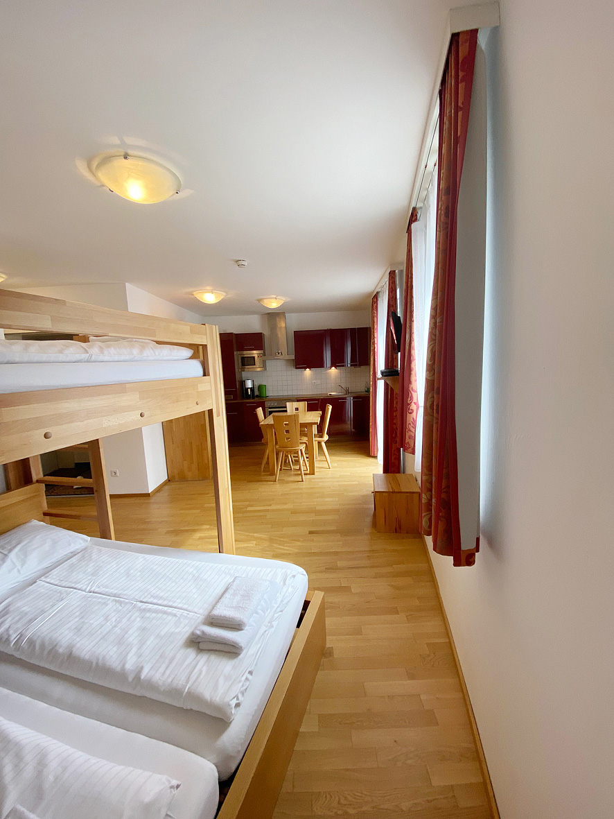 dítě do nedovršených 2 let zdarma (bez nároku na lůžko a služby; max. 1 dítě nad rámec plného obsazení apartmánu)