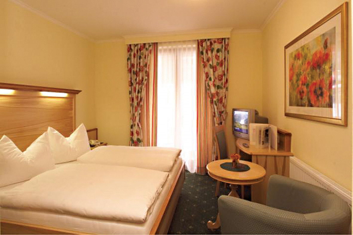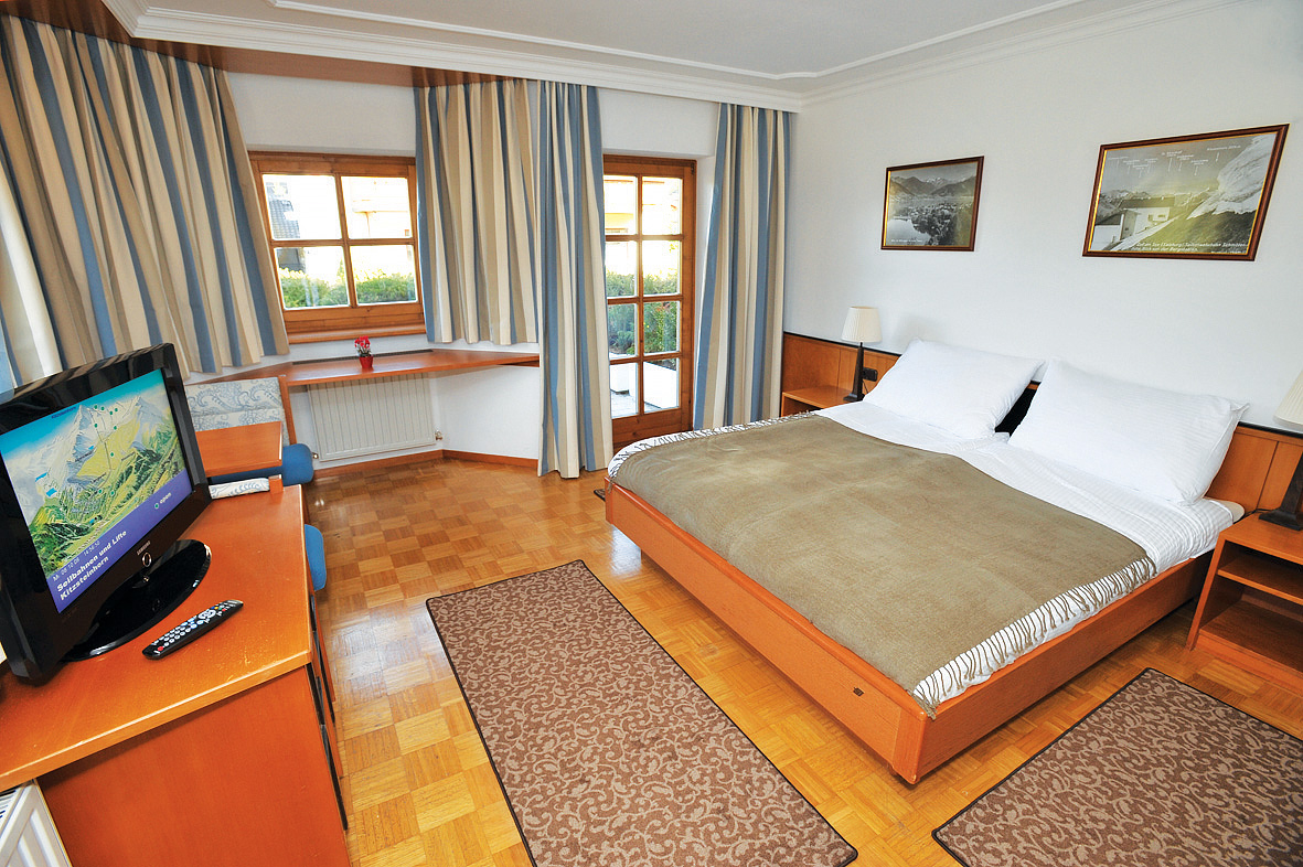 pokoj s manželskou postelí, sociální zařízení, zpravidla balkon či terasa