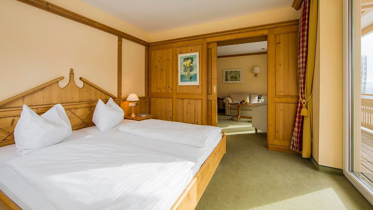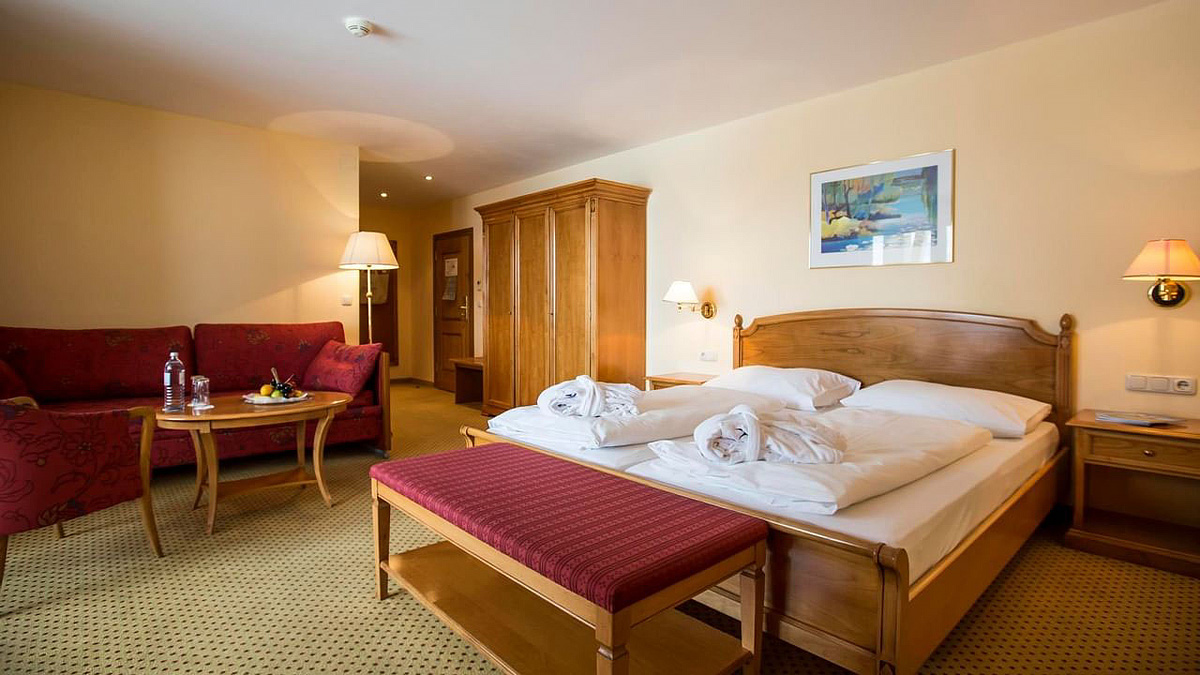 47 m² - ložnice s manželskou postelí, obývací pokoj s rozkládacím gaučem až pro 2 děti do nedovršených 18 let, sociální zařízení se sprchou či vanou, balkon; pokoje jsou v nové budově propojené s hlavní budovou výtahem; minimální obsazenost 2 dospělé osoby a 1 dítě; nelze infant nad maximální obsazenost pokoje