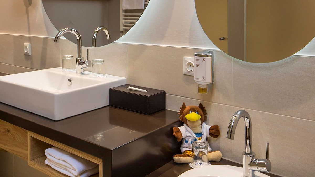 hotel je tvořen 2 budovami navzájem propojenými výtahy; všechny níže uvedené služby a pokoje Comfort 2, Junior Suite Comfort, Family Suite Comfort, Family Suite Superior a Family Maisonette se nachází v budově hlavní, pokoje Deluxe 2, Junior Suite Deluxe Family Suite Deluxe pak v nové budově
