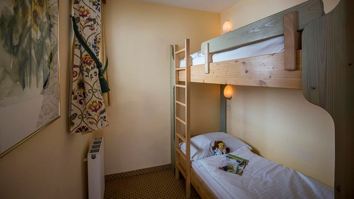 40 m² - ložnice s manželskou postelí, menší ložnice s palandou až pro 2 děti do nedovršených 18 let, obývací pokoj s rozkládacím gaučem pro 1 dítě do nedovršených 18 let, sociální zařízení se sprchou či vanou, balkon; minimální obsazenost 2 dospělé osoby a 1 dítě; na vyžádání včetně kalkulace lze obsadit i 3 dospělými osobami; nelze infant nad maximální obsazenost pokoje