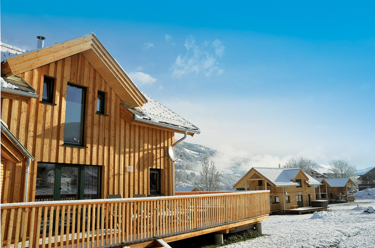 110 až 115 m² - chalet o 2 podlažích; obývací pokoj s kuchyňským koutem, 4 ložnice s manželskou postelí, ložnice s manželskou postelí či 2 samostatnými lůžky pro 2 osoby, 2 sociální zařízení, finská či infra sauna, venkovní vířivka, terasa