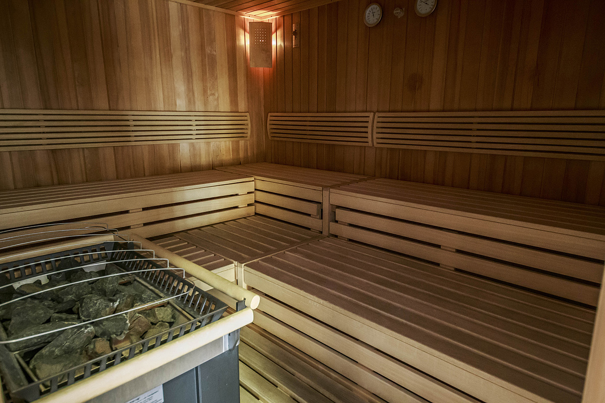 bazén 13 x 9 m, finská sauna, horizontální solárium*, relaxační koutek s lehátky, masáže*