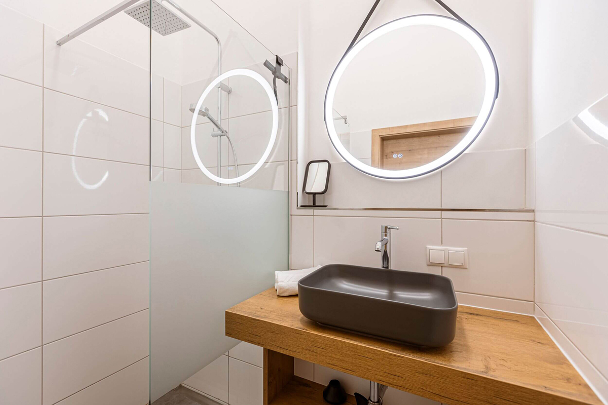 trilo 6 sauna - 56 až 65 m² - 2 ložnice s manželskou postelí, obývací pokoj s kuchyňským koutem a rozkládacím gaučem pro 2 osoby, 2x sociální zařízení (1x s privátní finskou saunou), balkon či terasa