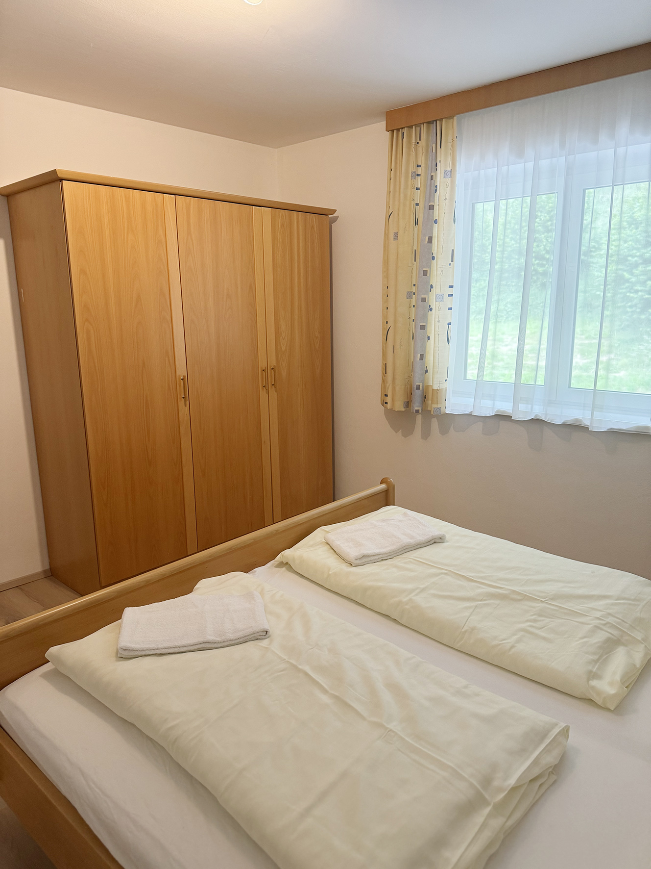 trilo 9 - 73 m² - 1 ložnice s manželskou postelí a palandou pro 2 osoby, 1 ložnice s manželskou postelí, obývací pokoj s částečně odděleným kuchyňským koutem, rozkládacím gaučem pro 2 osoby a samostatným lůžkem pro 1 osobu, sociální zařízení, oddělené WC, balkon